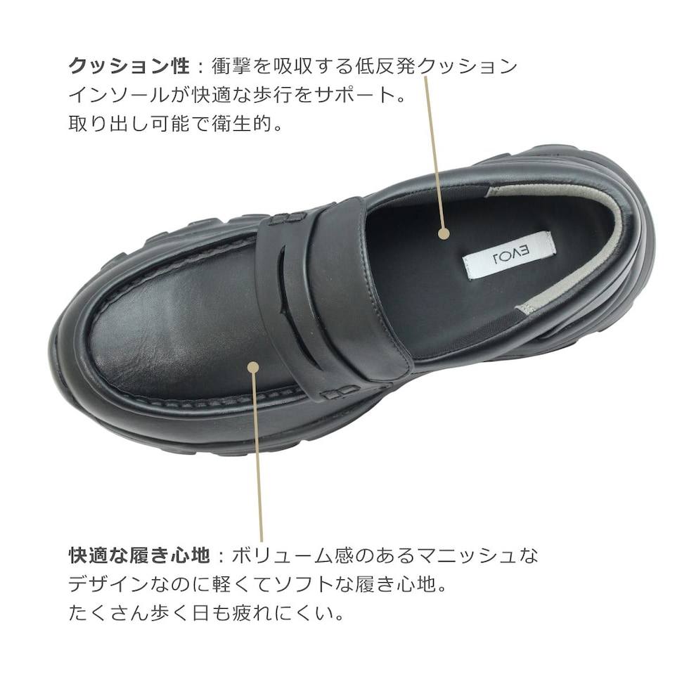 EVOL イーボル IZ 5849 レディース スニーカー ローファー マニッシュ 厚底 軽量 通学 靴