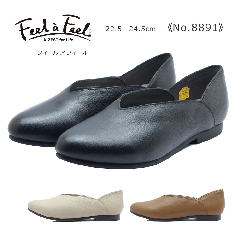 Feel a Feel A・ZEST for Life フィール ア フィール レディース シューズ 8891 フラット ローヒール 靴 黒 ブラック キャメル オーク