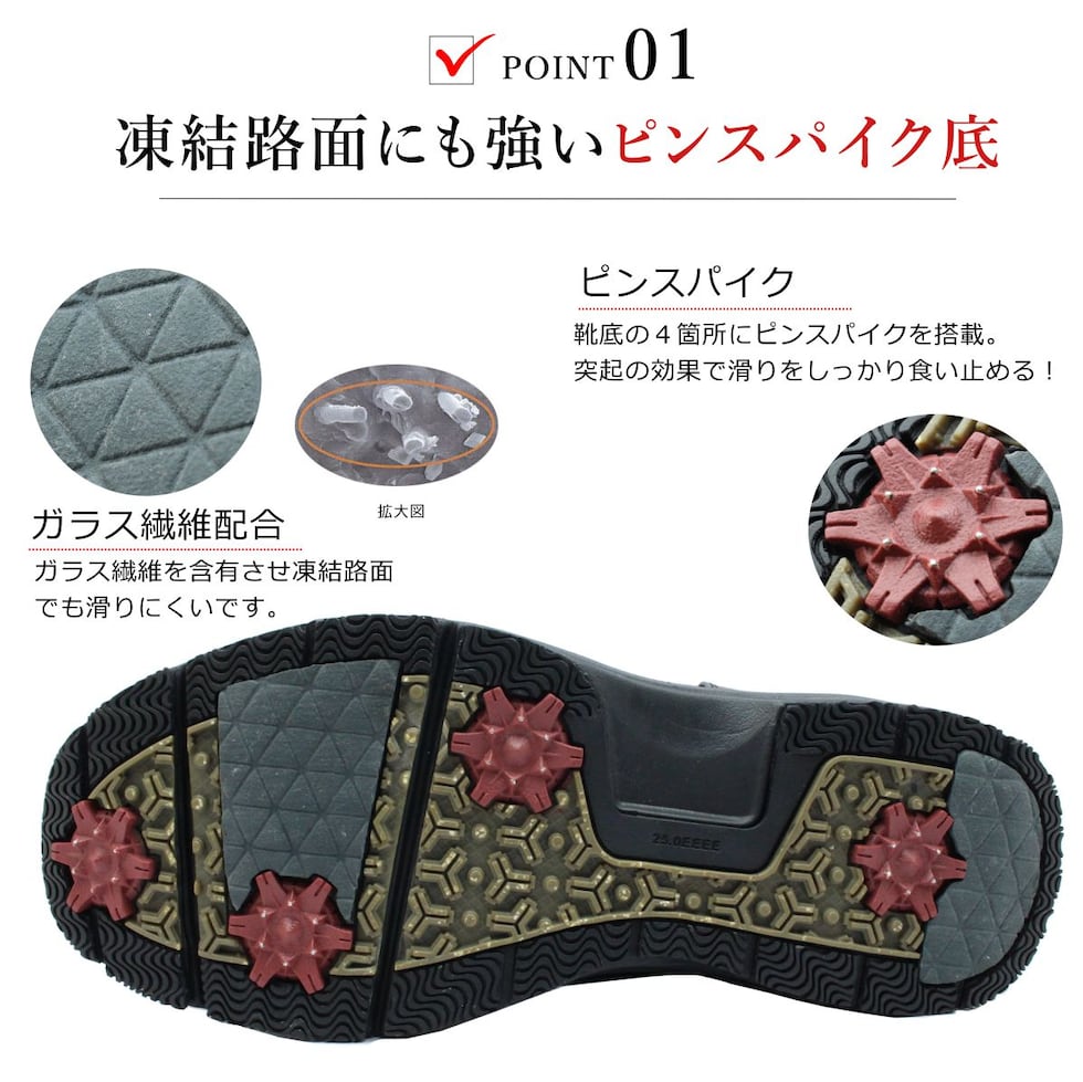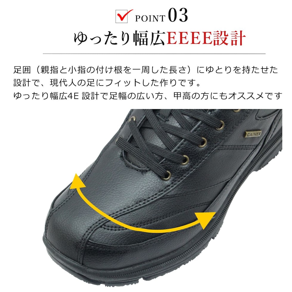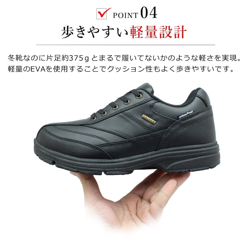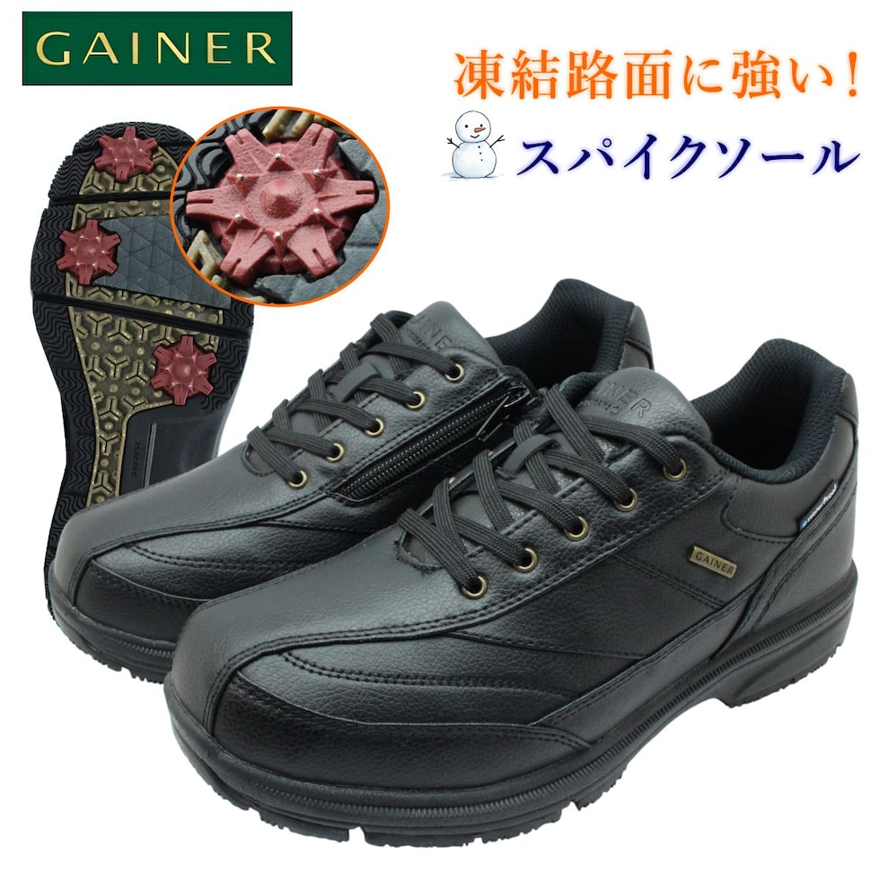 | GAINER ゲイナー メンズ スノーシューズ ピンスパイク底 幅広4E 防水 防滑 軽量 GN0143 ガラス繊維 アーチサポート 143 靴 ブラック |