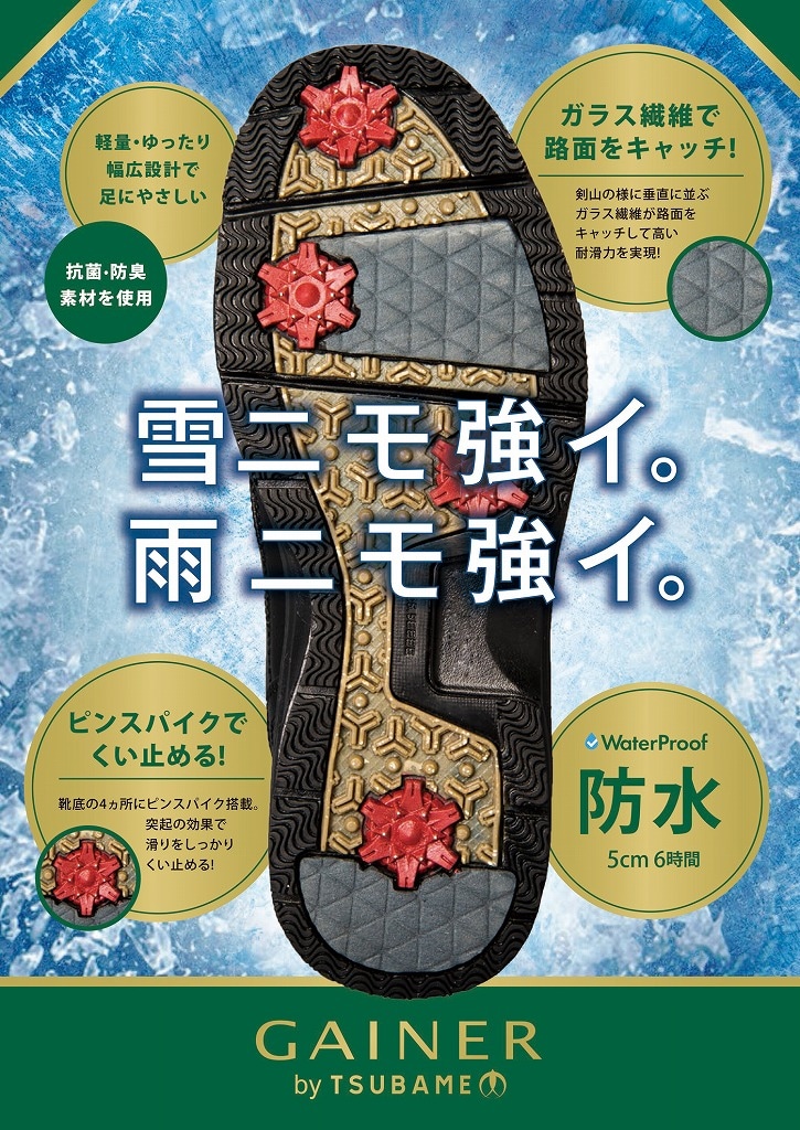 GAINER ゲイナー メンズ スノーシューズ ピンスパイク底 幅広4E 防水 防滑 軽量 GN0143 ガラス繊維 アーチサポート 143 靴 ブラック