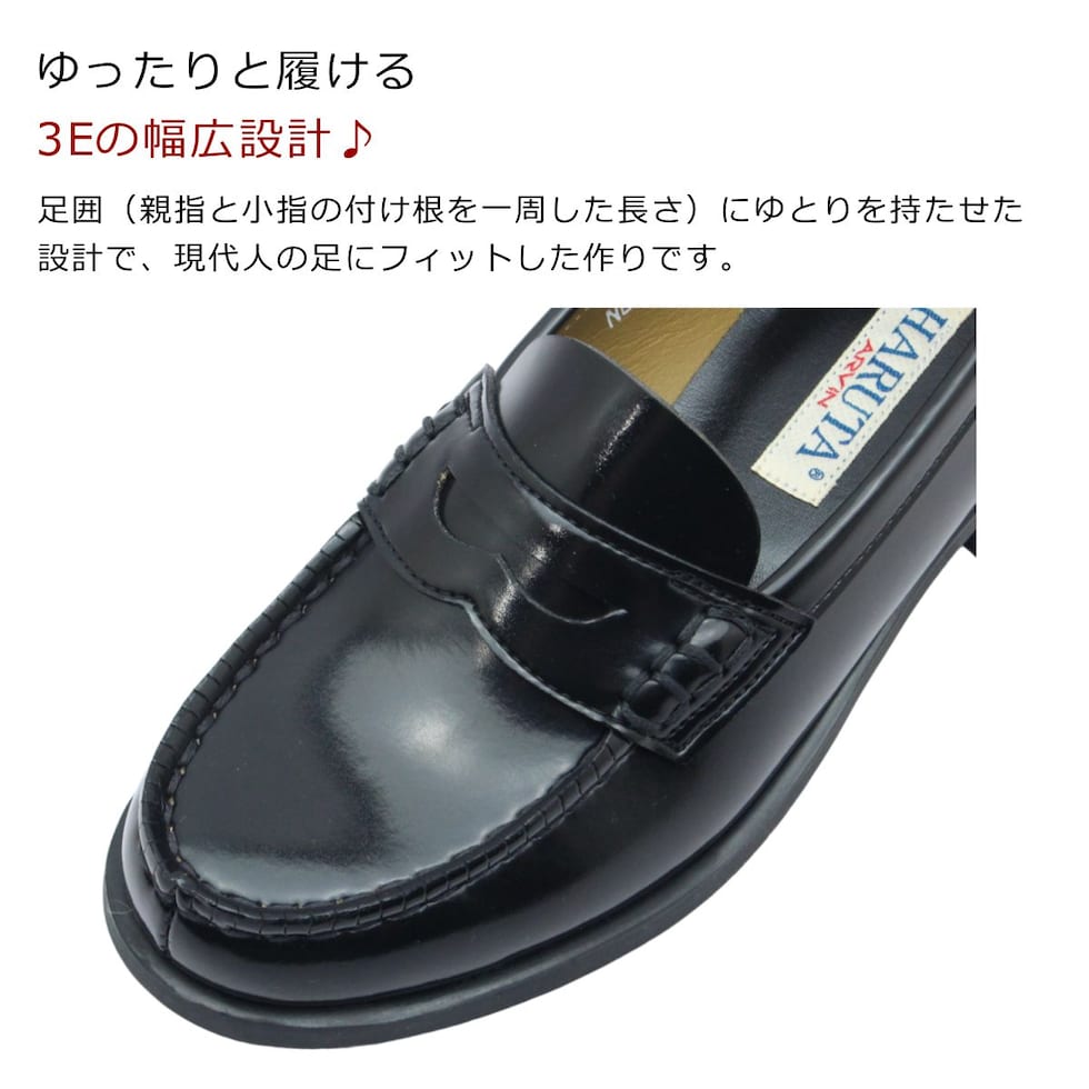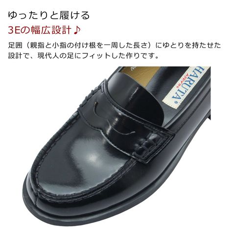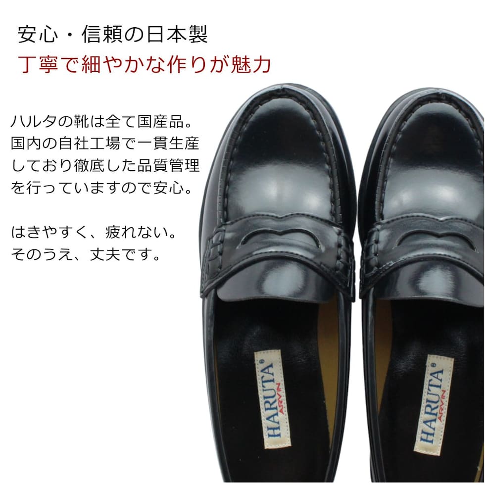ハルタ HARUTA レディース ローファー 4505 幅広3E 日本製 学生 通勤 通学 靴 ブラック ジャマイカ