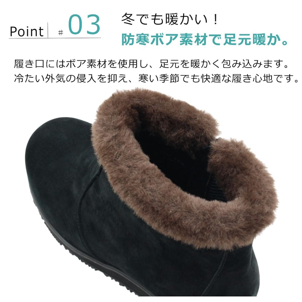 内側にはボア素材を使用しており、足全体をやさしく包み込むような暖かさで、寒い日でも安心して着用いただけます。