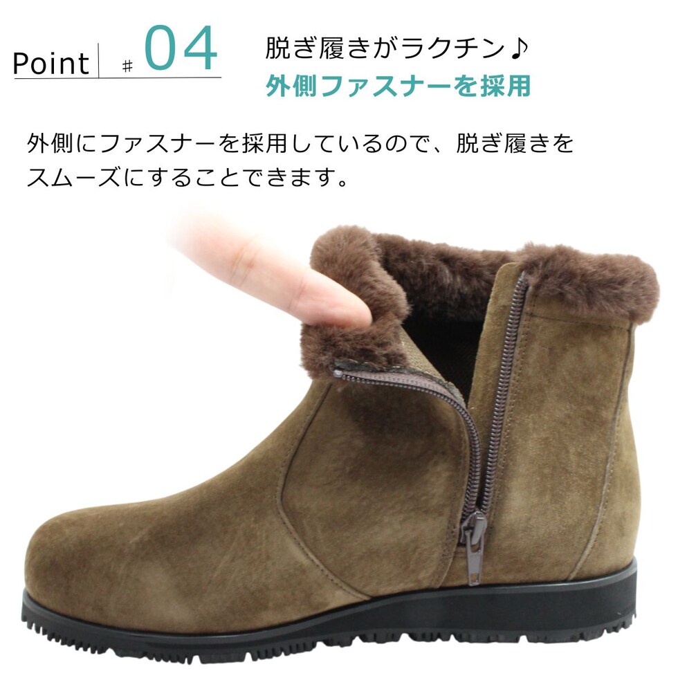 サイドにはファスナーを採用しているため、脱ぎ履きもスムーズです。