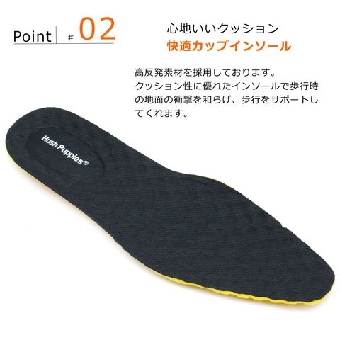 インソールには高反発素材のカップインソールを搭載しクッション感をUP。