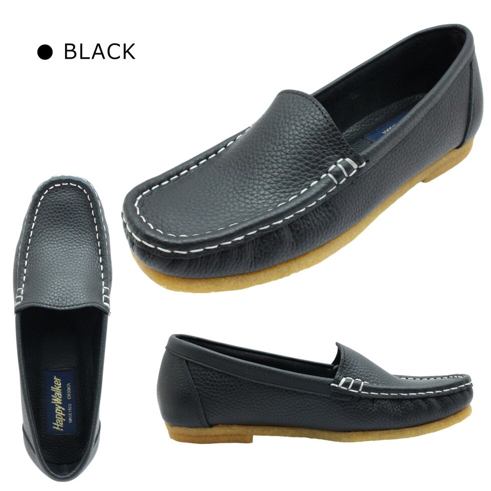 ハッピーウォーカー Happy Walker レディース スリッポン レザー L-2711T クレープ底 モカシンシューズ 2711 本革 婦人 ブラック ホワイト フラット 靴 大塚製靴
