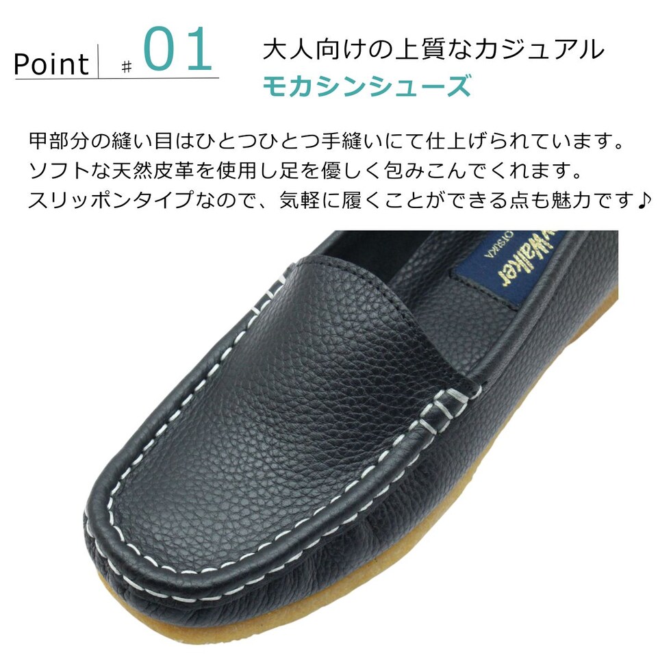 | ハッピーウォーカー Happy Walker レディース スリッポン レザー L-2711T クレープ底 モカシンシューズ 2711 本革 婦人 ブラック ホワイト フラット 靴 大塚製靴 |