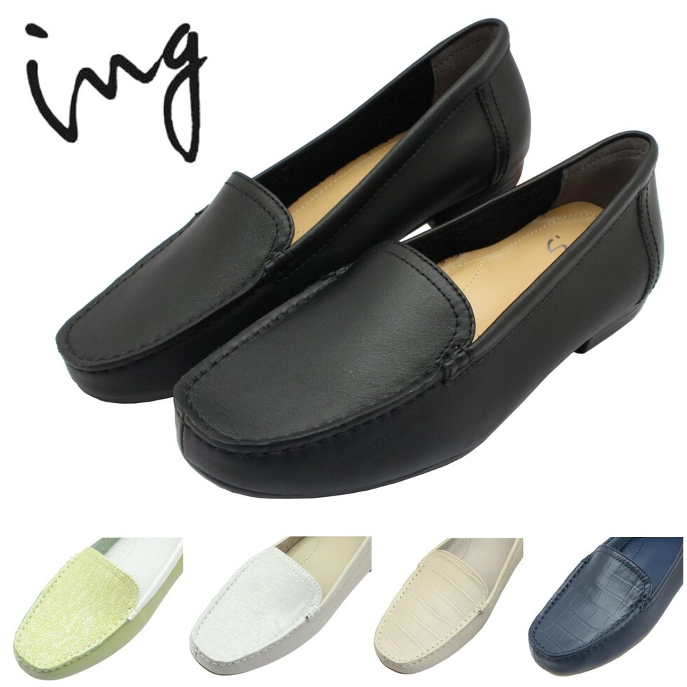 イング ing レディース IGKK 32175 ローファー モカシン 婦人靴 本革 レザー ブラック アイボリー ブルー ライトグレー