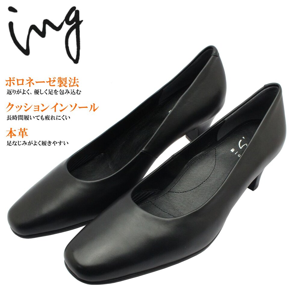 ing イング スクエアトゥパンプス パンプス IGRA 43570 5cmヒール ブラック 本革 冠婚葬祭 ビジネス オフィス