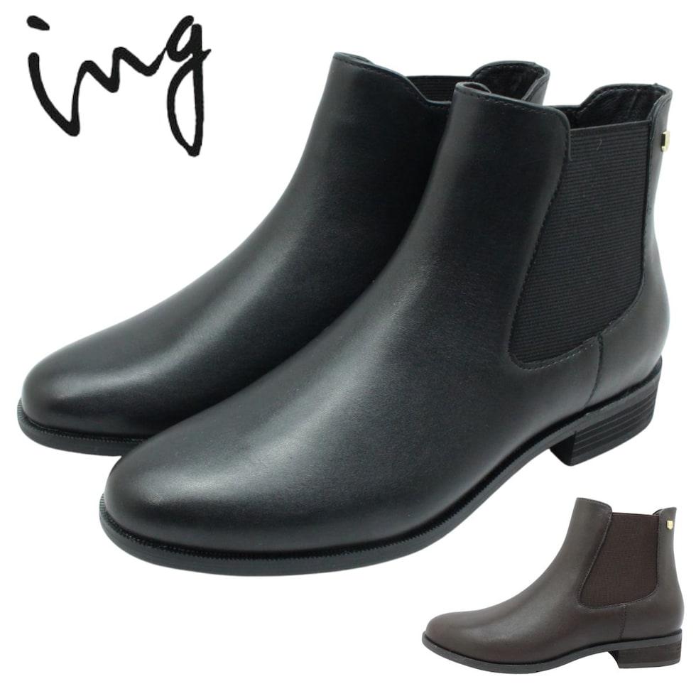 ing イング レディース レザー ショートブーツ サイドゴア IGST 58169 防滑 本革 婦人靴 スノーシューズ