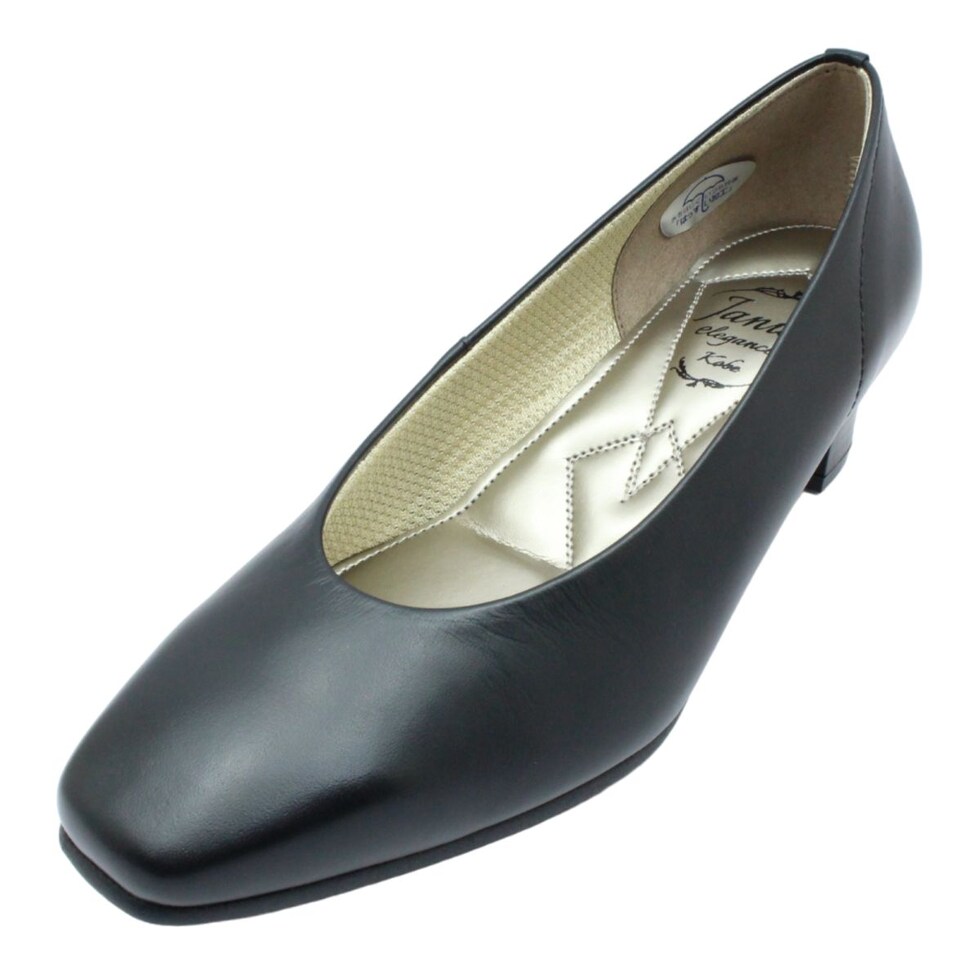 | Janis Elegance レディース パンプス 幅広4E 8002 本革 日本製 5cmヒール ベーシック リクルート ブラック 黒 ジャニス エレガンス |