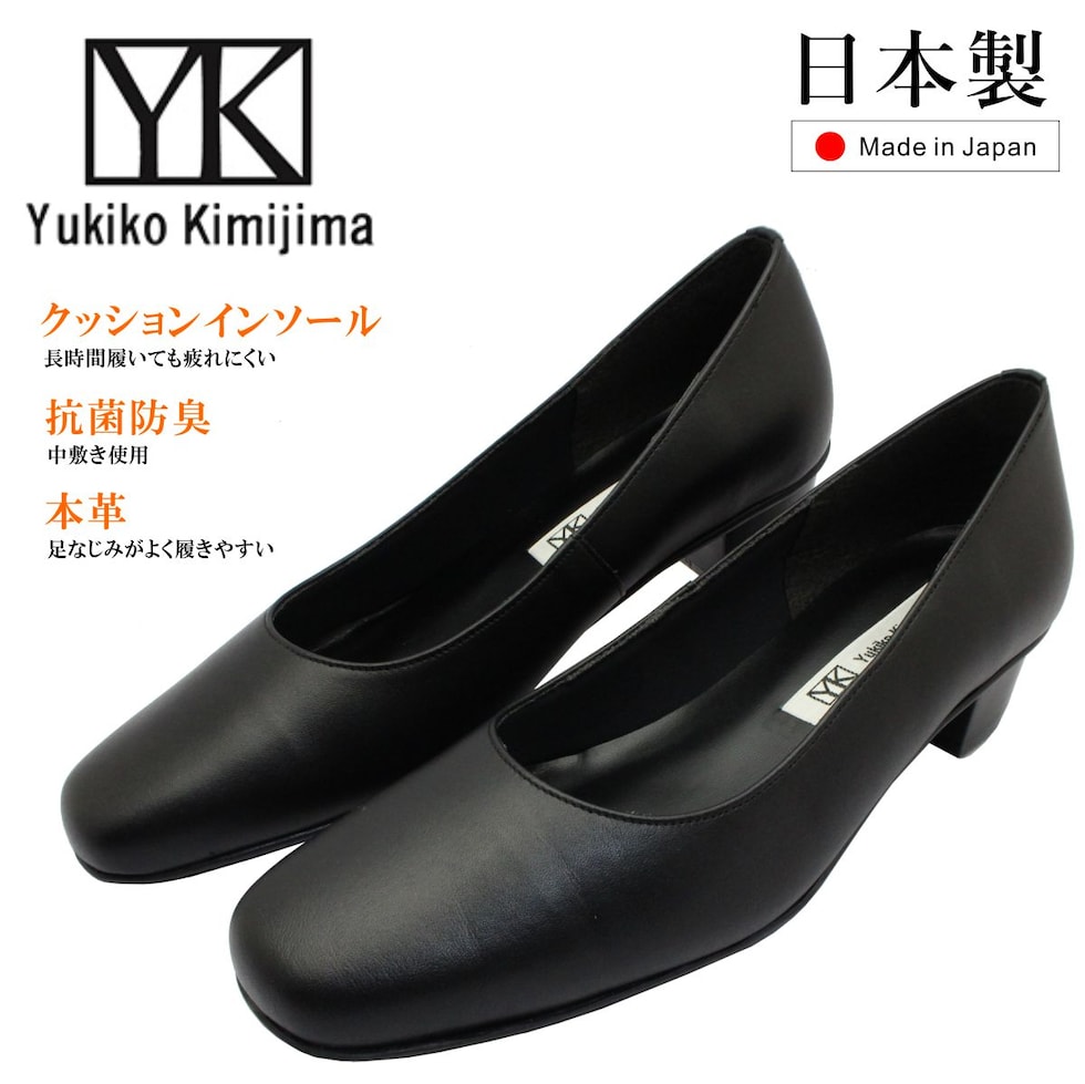 Yukiko Kimijima ユキコ キミジマ レディース スクエアトゥ パンプス 日本製 パンプス 685 ブラック 本革 冠婚葬祭 ビジネス オフィス