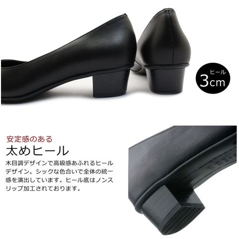 フォーマルなパンプスでは希少な高さ3cmのローヒール。