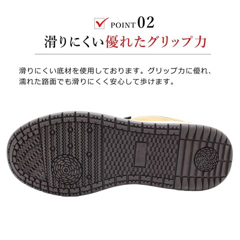凹凸のあるアウトソールで地面をしっかりキャッチ!防滑ソール仕様。