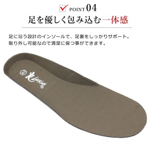 インソール中敷きは脱着式なので洗濯や交換が可能で清潔に◎。