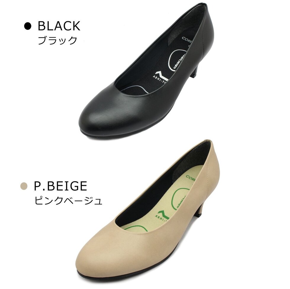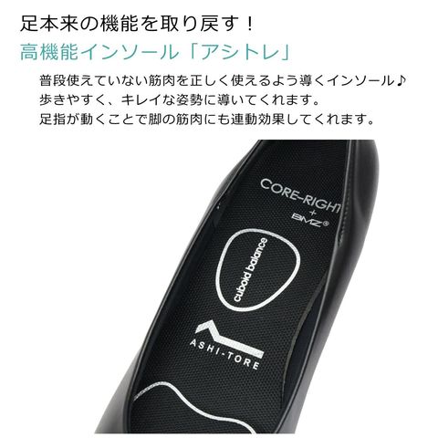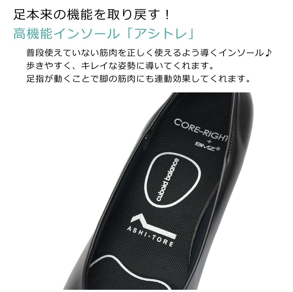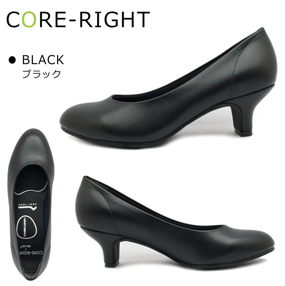 CORE-RIGHT コアライト レディース パンプス MA-38 アシトレ BMZ インソール 姿勢 矯正 美脚 むくみ 腰痛 肩こり 改善 脚痩せ 5cmヒール 日本製 婦人 シンプル フォーマル ブラック