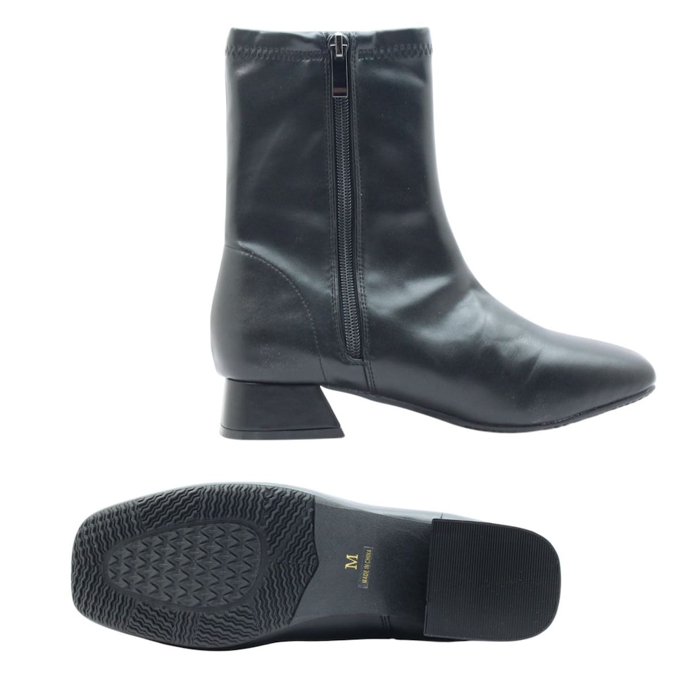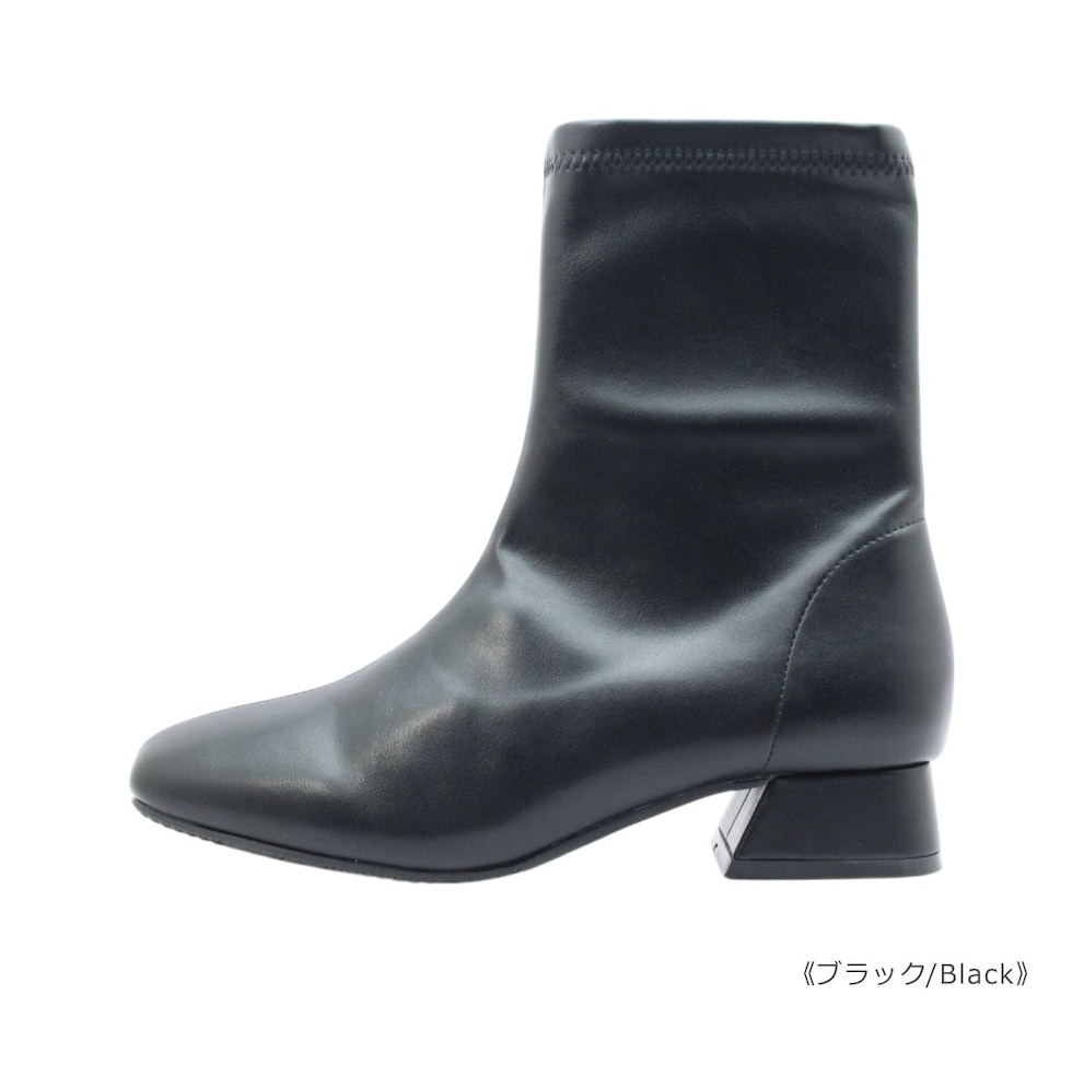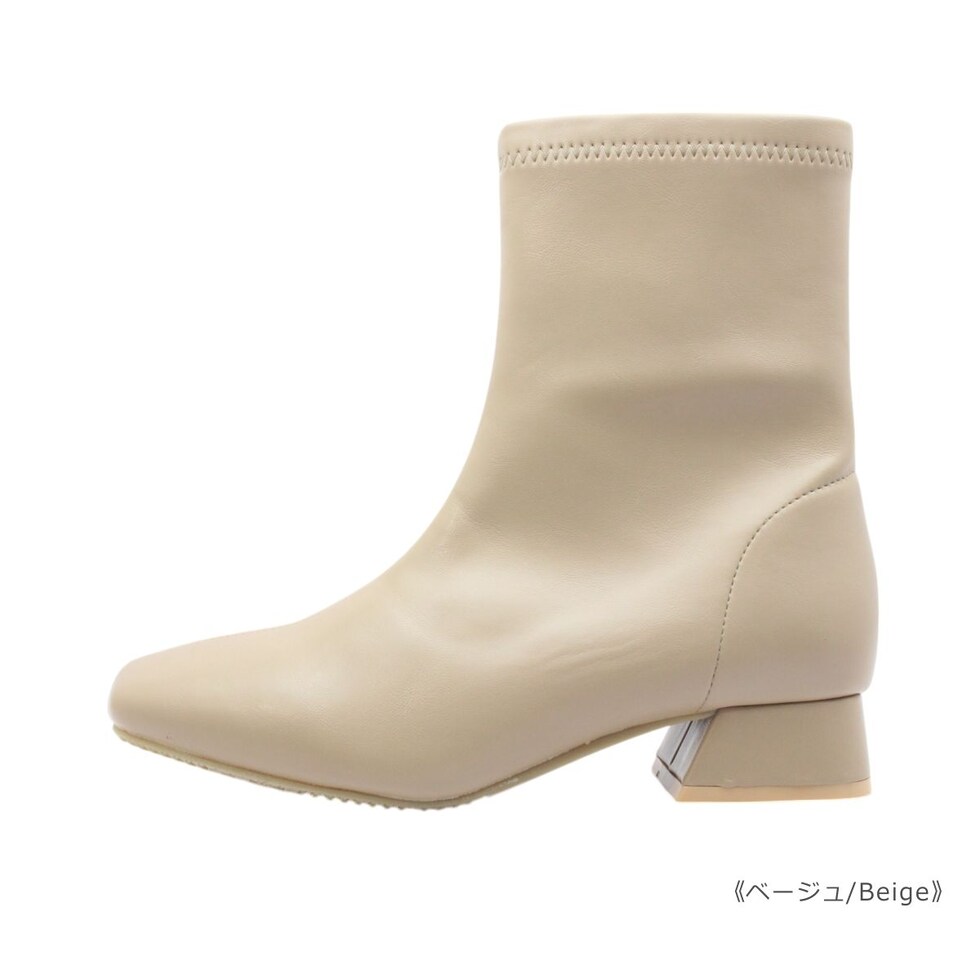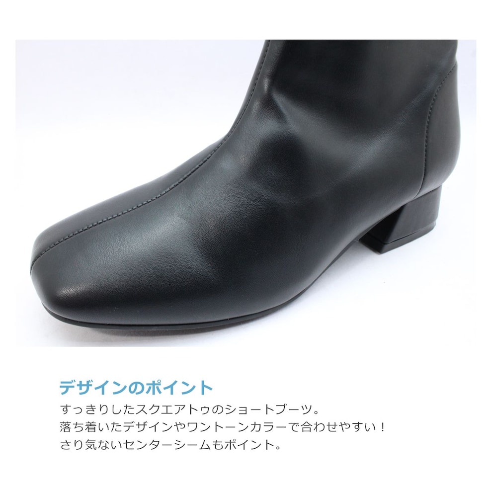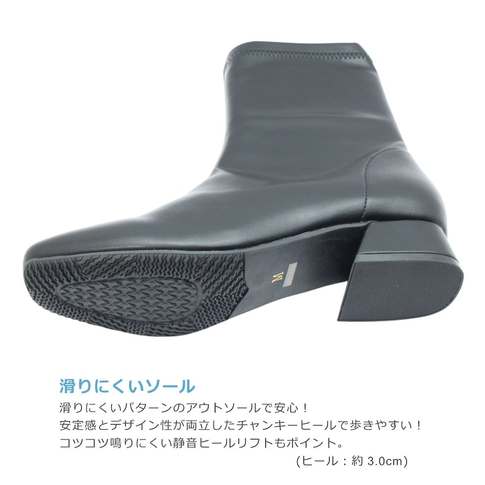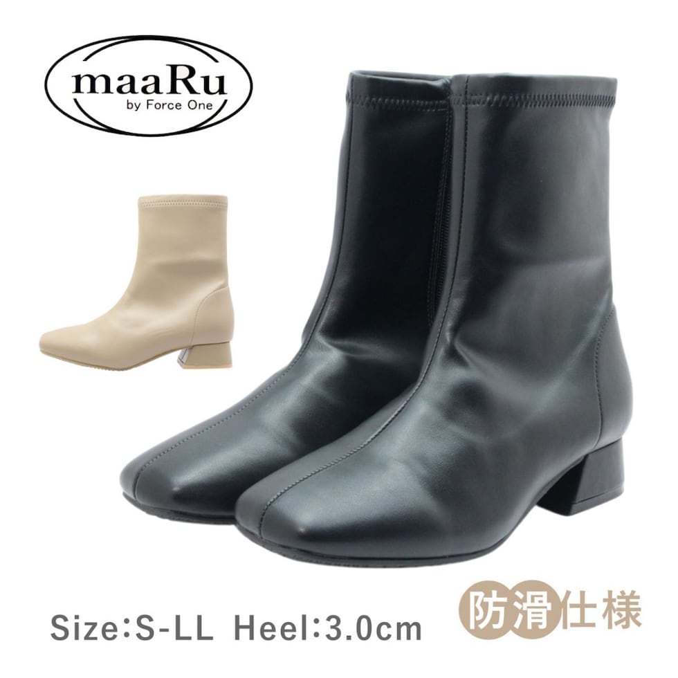 maaRu マアル マール レディース ブーツ 4143 ショート スクエアトゥ チャンキーヒール ブーティ ジップ ストレッチ 防滑 歩きやすい 靴 黒 茶 ブラック ベージュ