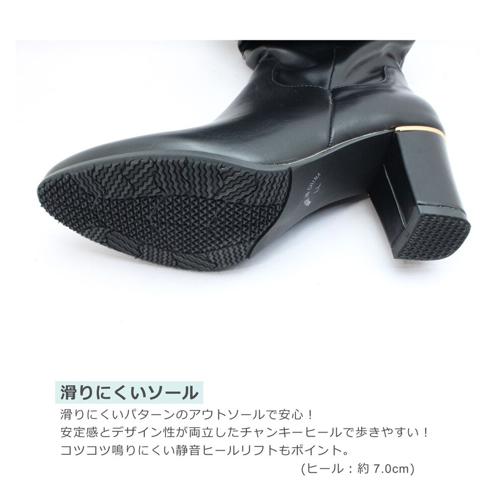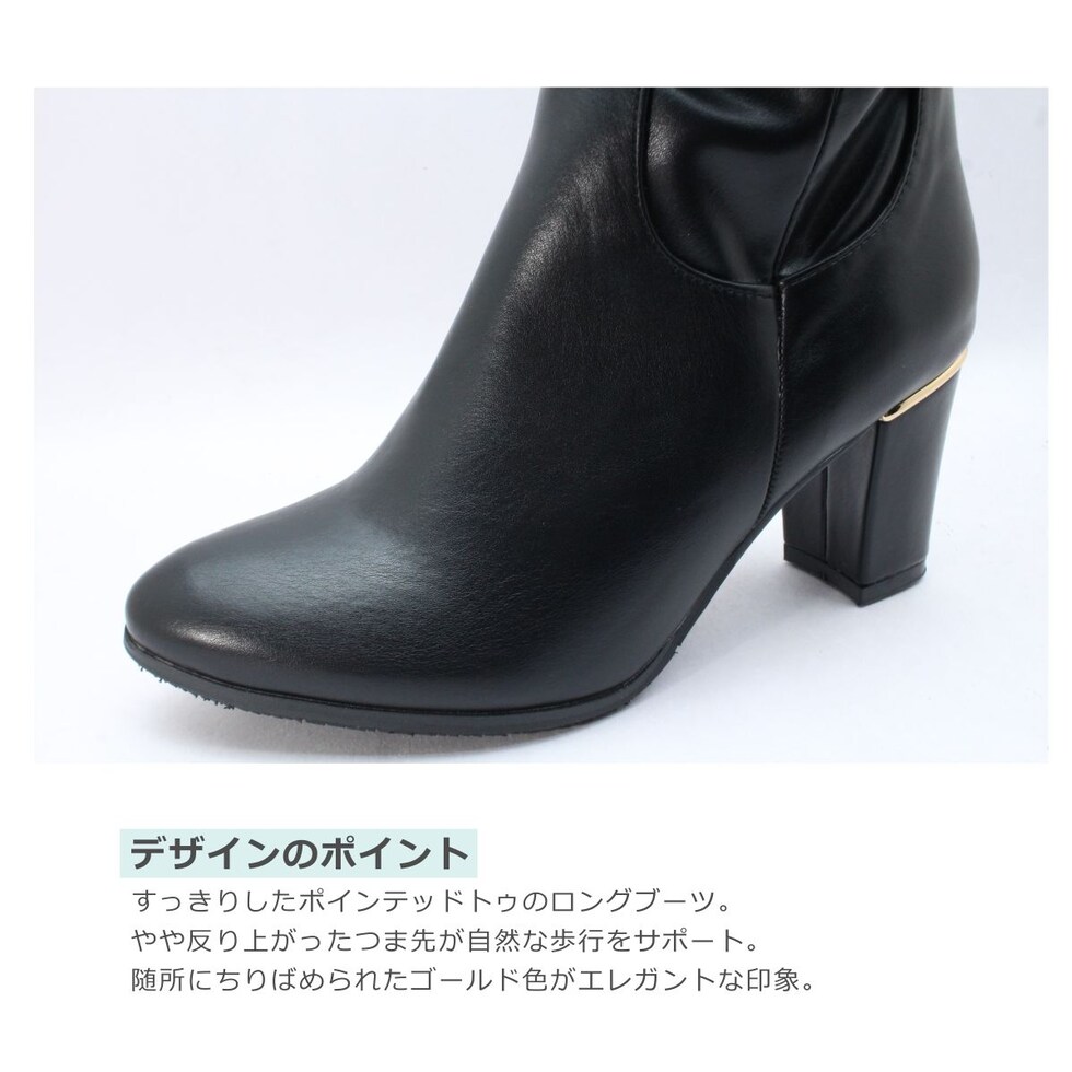 maaRu マアル マール レディース ブーツ 603 ロング ポインテッドトゥ チャンキーヒール 防滑 靴 黒 茶 ブラック ブラックスエード ベージュ