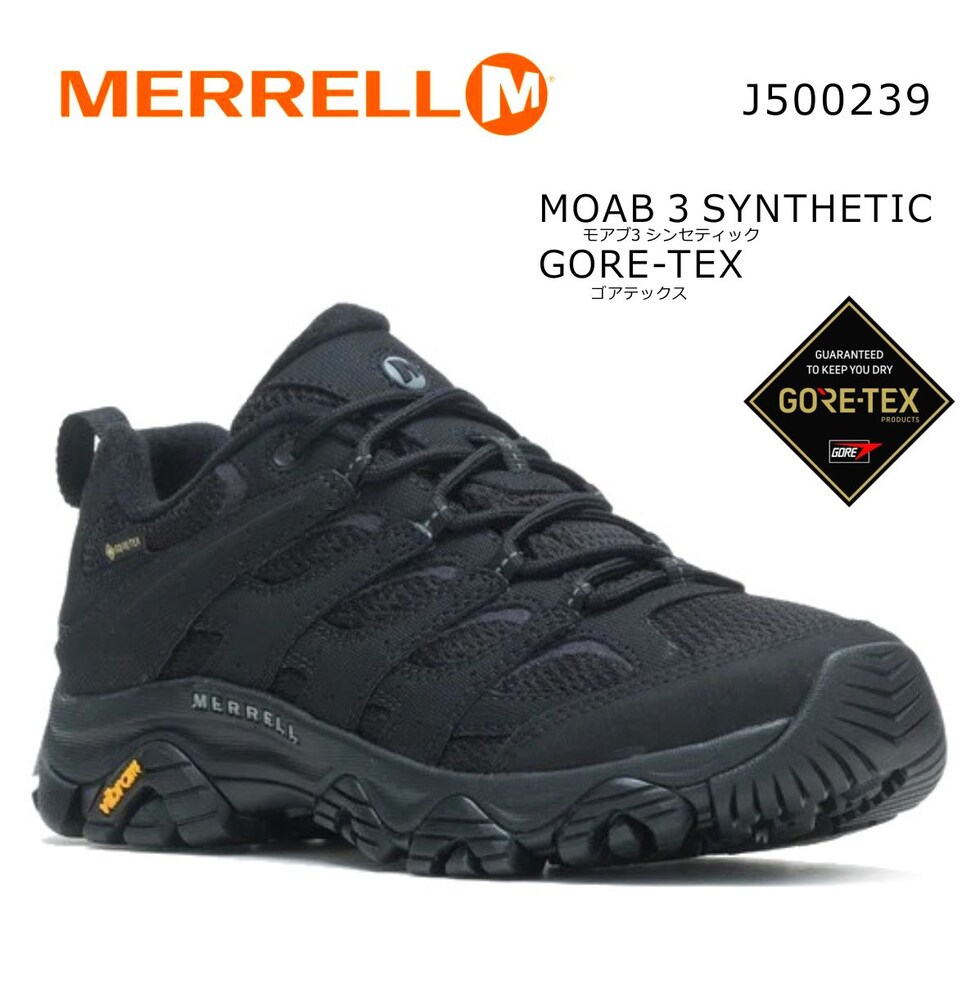 | メレル モアブ 3 MERRELL MOAB 3 メンズ シンセティック ロー ゴアテックス トレッキング ウォーキングシューズ スニーカー SYNTHETIC GTX GORE-TEX 500239 ブラック |