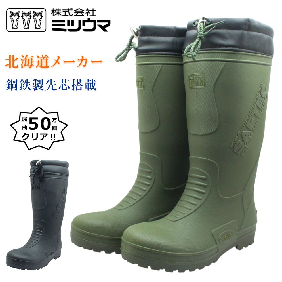 | ミツウマ メンズ 長靴 鋼鉄製先芯 セフティー NO. 1100MU 防滑 軽量 防水 フード付き 安全靴 セーフテック 1100 北海道 |
