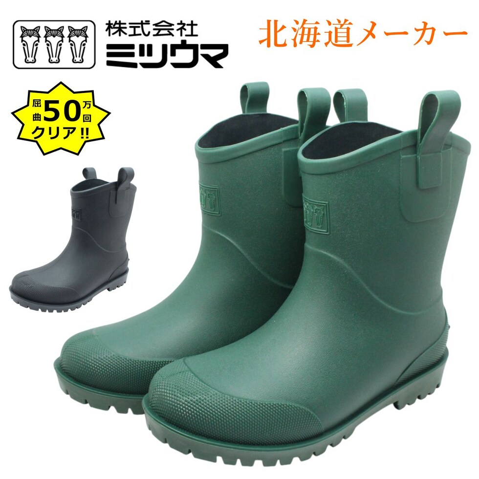 ミツウマ MRB-1190 長靴 男女兼用 レインブーツ 軽量 防滑 耐久性 ガーデニング 農作業 アウトドア カーキ ハーフ丈 1190 レディース メンズ