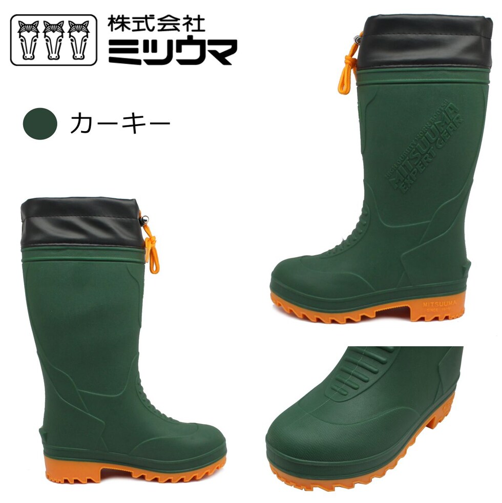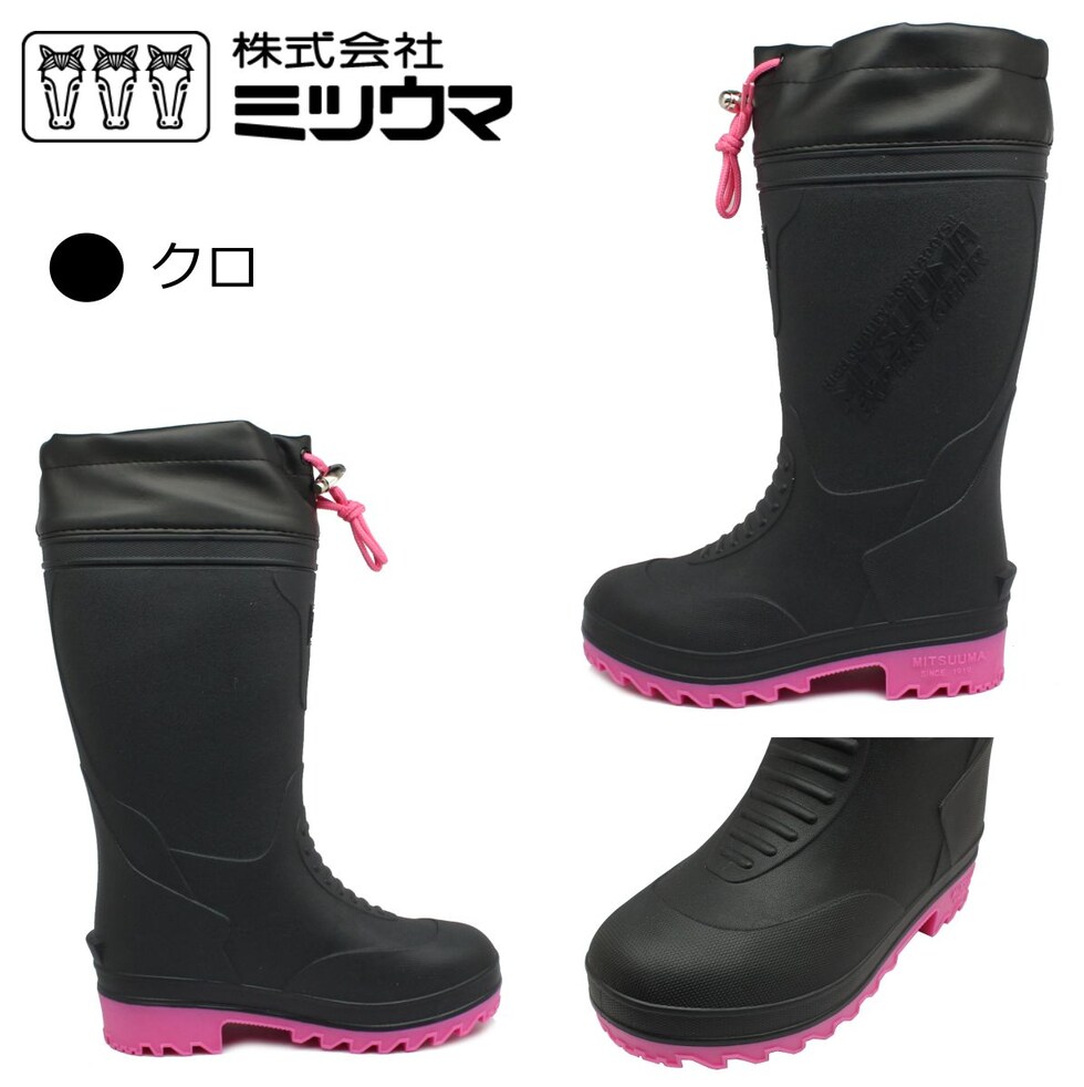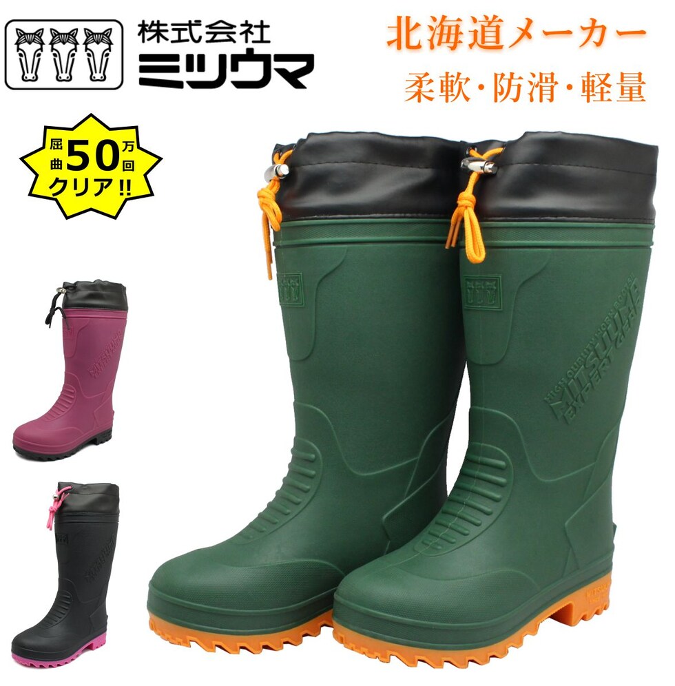 ミツウマ レディース 長靴 北海道 MRB-3008 防滑 軽量 完全防水 農作業 家庭菜園 ガーデニング フード付き 3008 クロ カーキー プラム