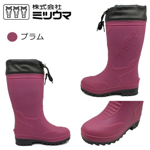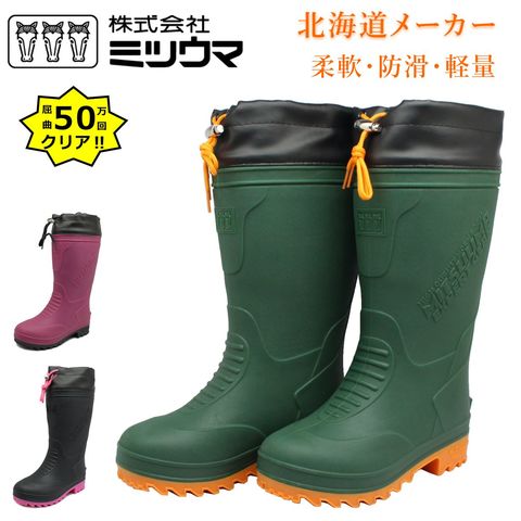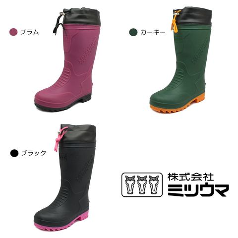 | ミツウマ レディース 長靴 北海道 MRB-3008 防滑 軽量 完全防水 農作業 家庭菜園 ガーデニング フード付き クロ カーキー プラム |