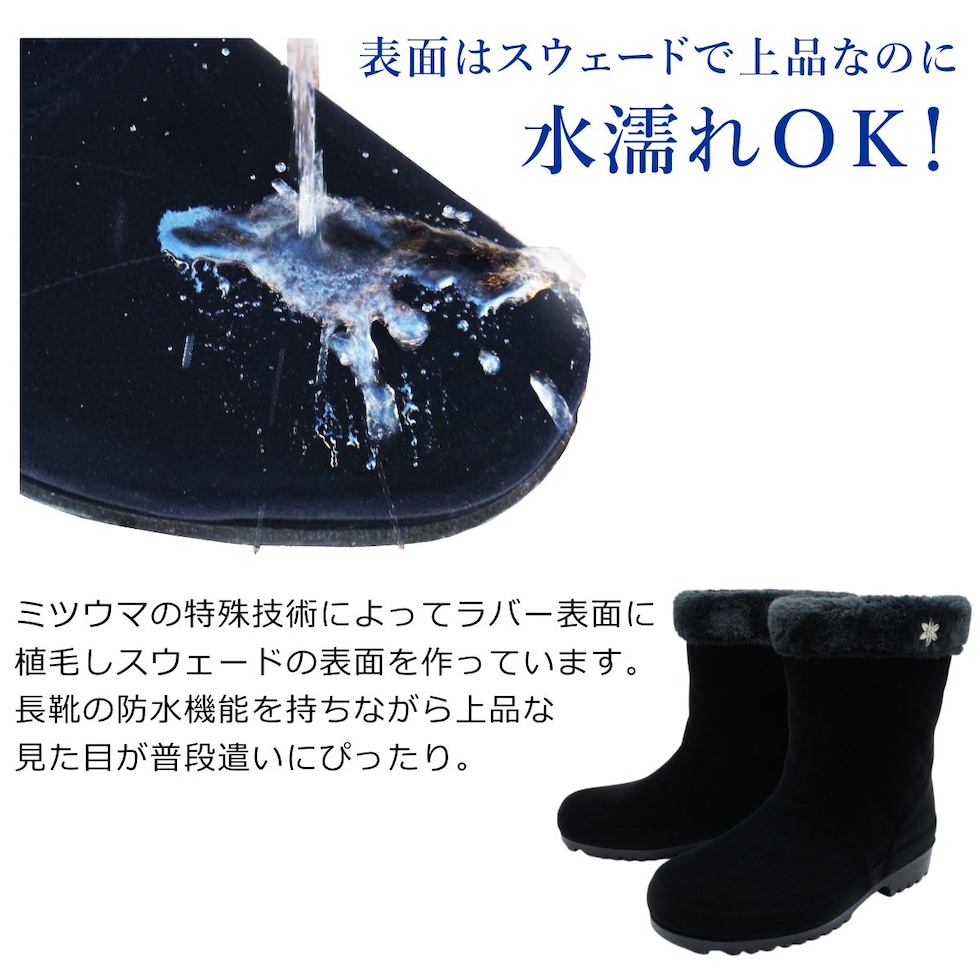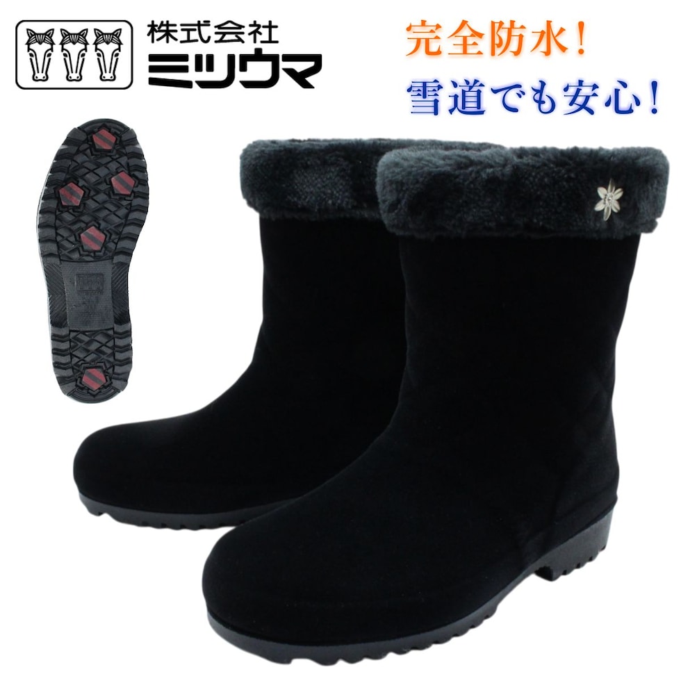 ミツウマ レディース スノーブーツ エメロード No.730MUCES ガラス繊維底 防寒 防水 防滑 長靴 黒 ショート 730 北海道