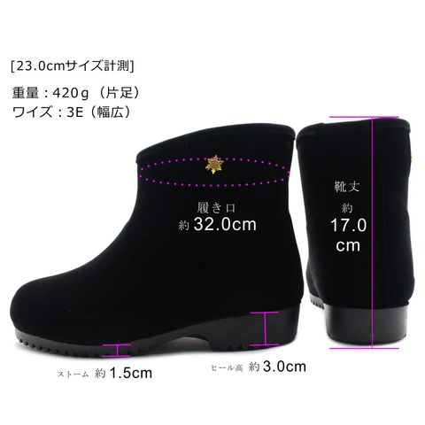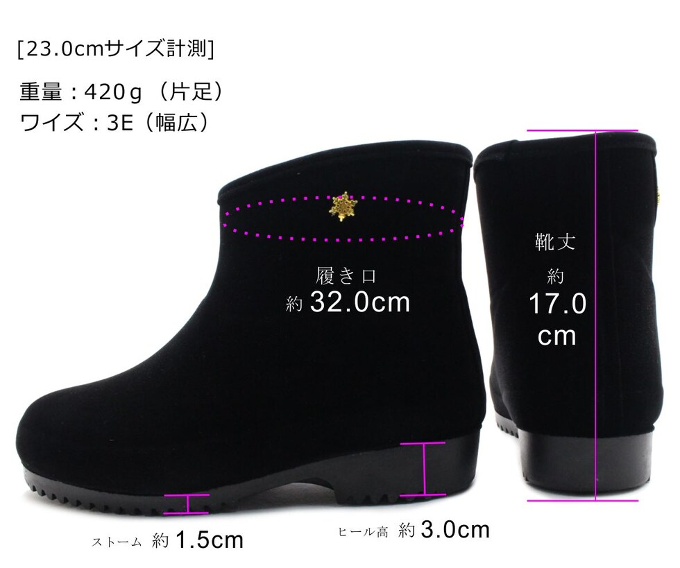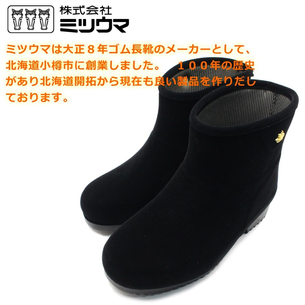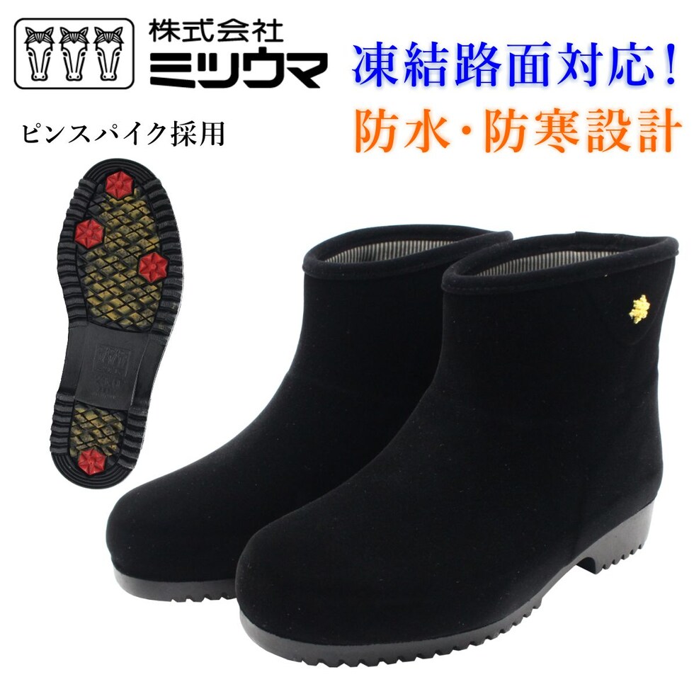ミツウマ レディース エメロード No.810MUCES スノーブーツ スパイク付き 防寒 防水 防滑 黒 ショート