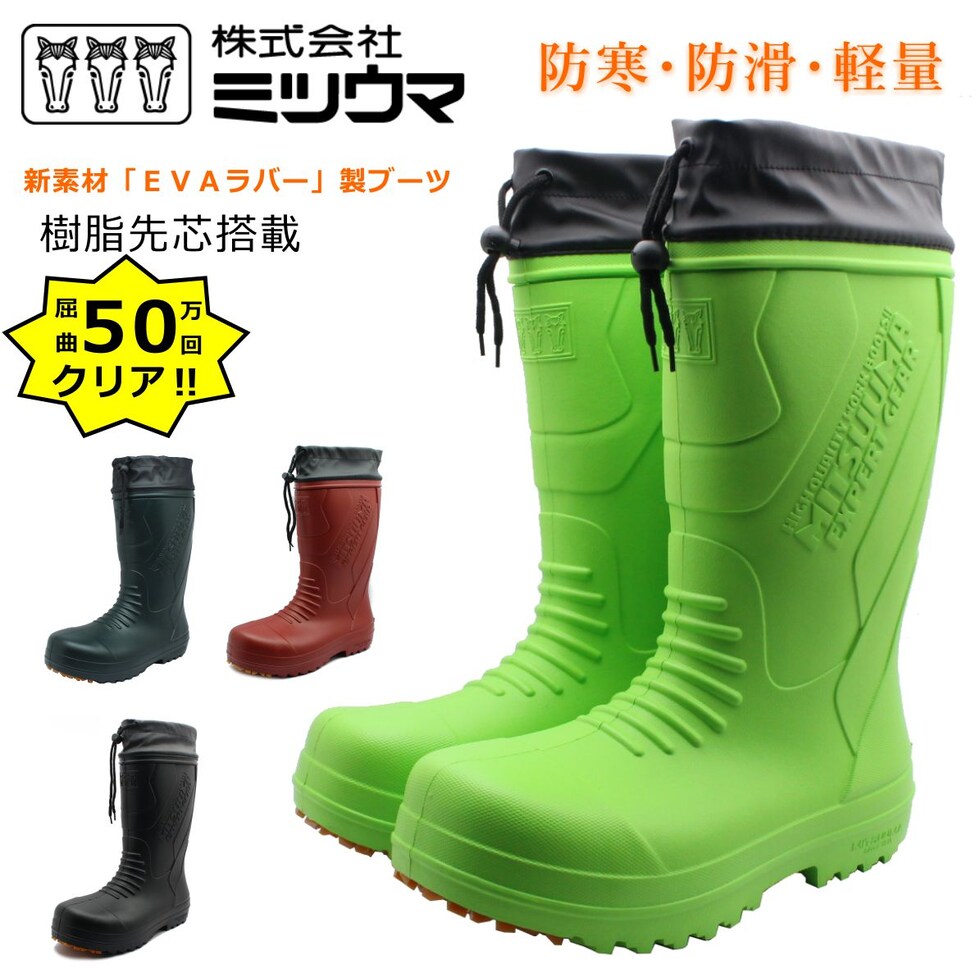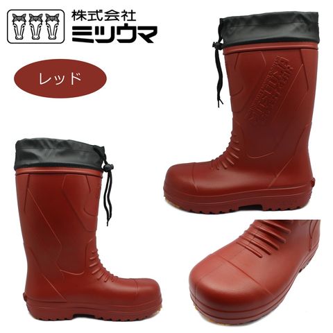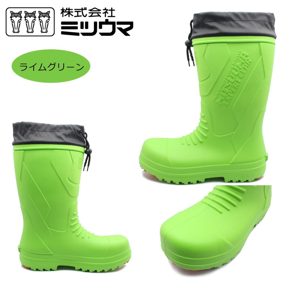ミツウマ メンズ 長靴 北海道 セフティー ER-2029 防寒 防滑 軽量 防水 雪道対応 フード付き 安全ガード 紳士長靴 クロ ライム レッド