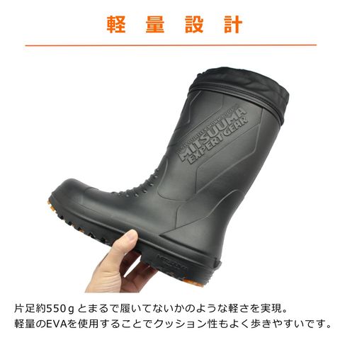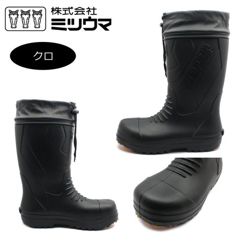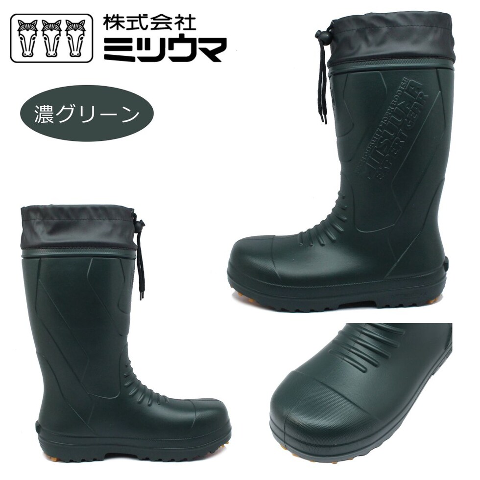 ミツウマ メンズ 長靴 北海道 セフティー ER-2029 防寒 防滑 軽量 防水 雪道対応 フード付き 安全ガード 紳士長靴