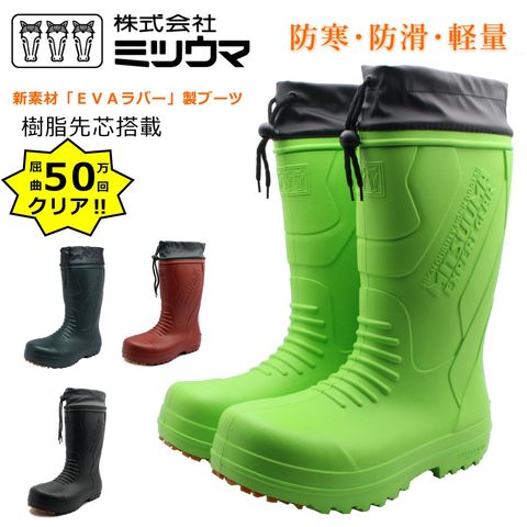 新素材の高分子合成ゴム70%+EVA樹脂30%の特殊配合素材「EVAラバー」製ブーツ