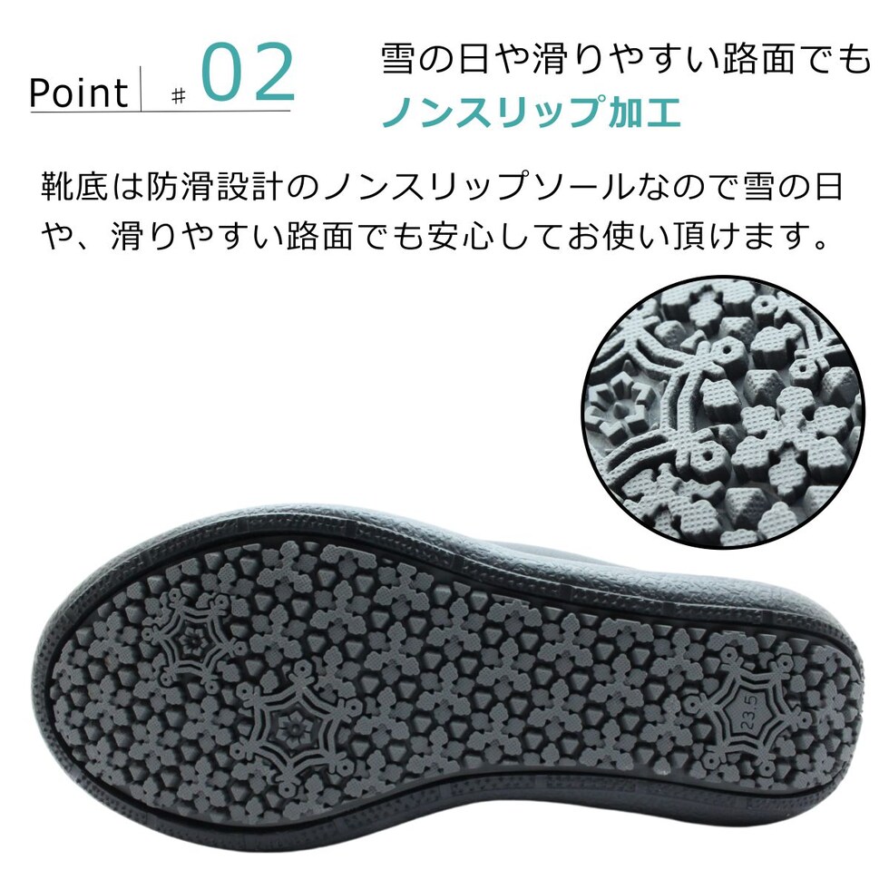 靴底にはしっかりとした滑り止めがついており、雨・雪など濡れた路面でも滑りにくくなっております。