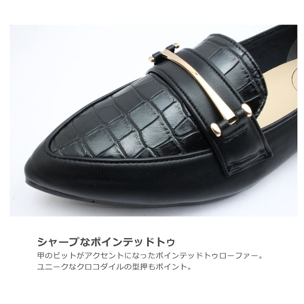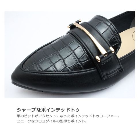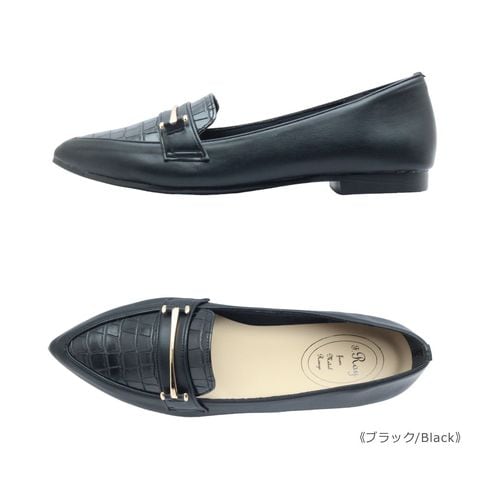 Metal Rouge メタルルージュ レディース シューズ 1001 フラット ポインテッドトゥ パンプス ビット クロコダイル ローヒール ローファー 歩きやすい 軽い 軽量 日本製 靴 黒 ブラック カーキ