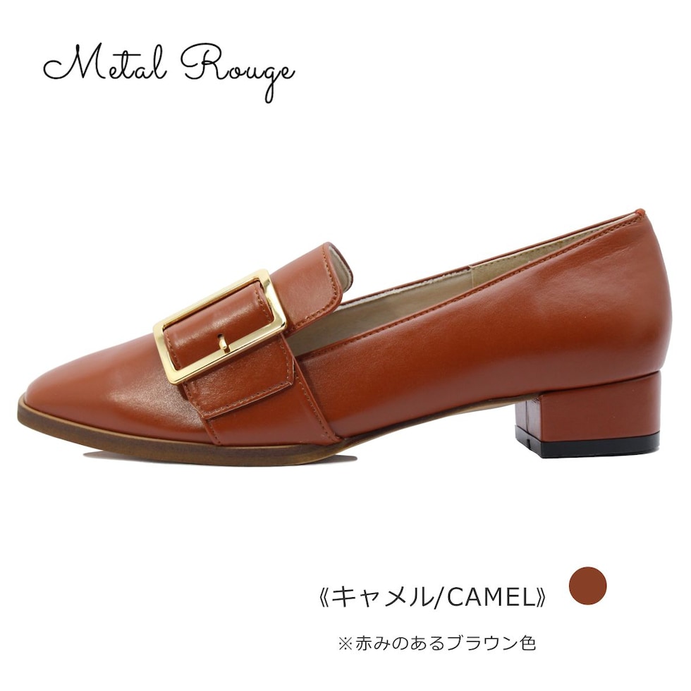 Metal Rouge メタルルージュ レディース パンプス 4141 ローヒール バックル 日本製 靴 黒 ブラック オーク キャメル
