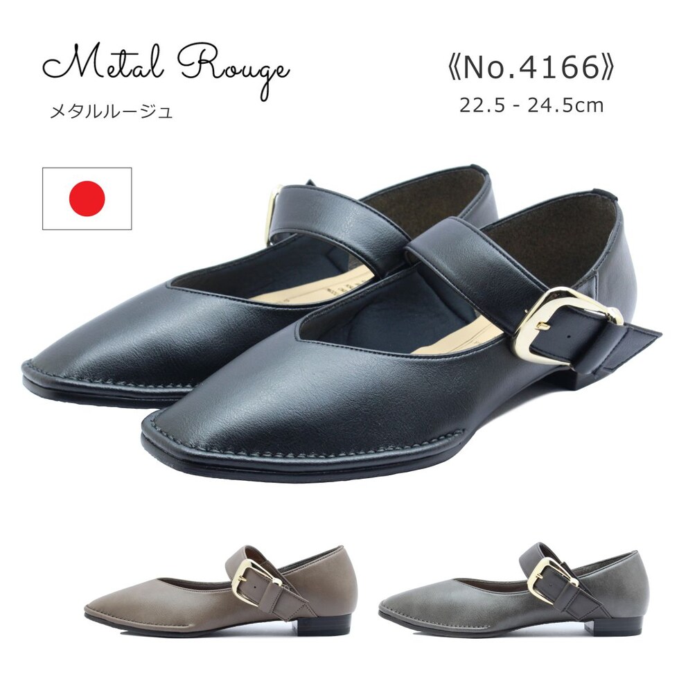 | Metal Rouge メタルルージュ レディース シューズ 4166 フラット ストラップ 靴 黒 ブラック グレー オーク |