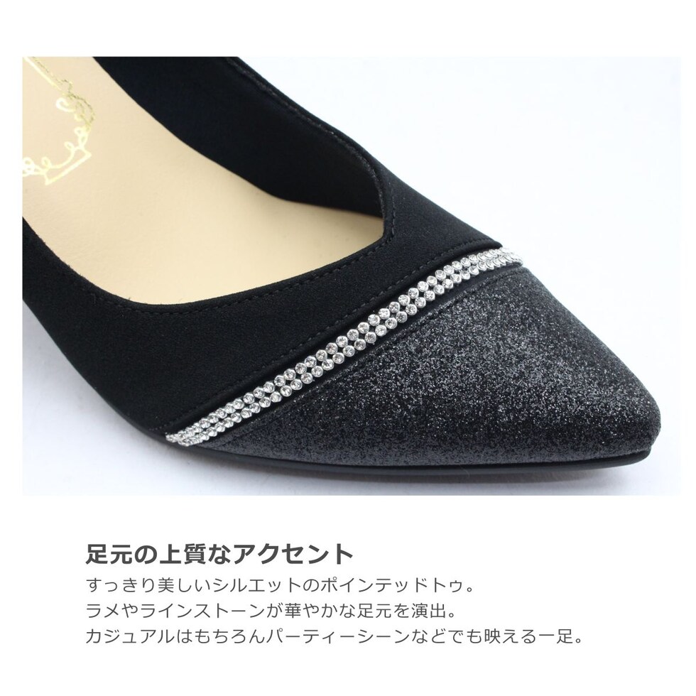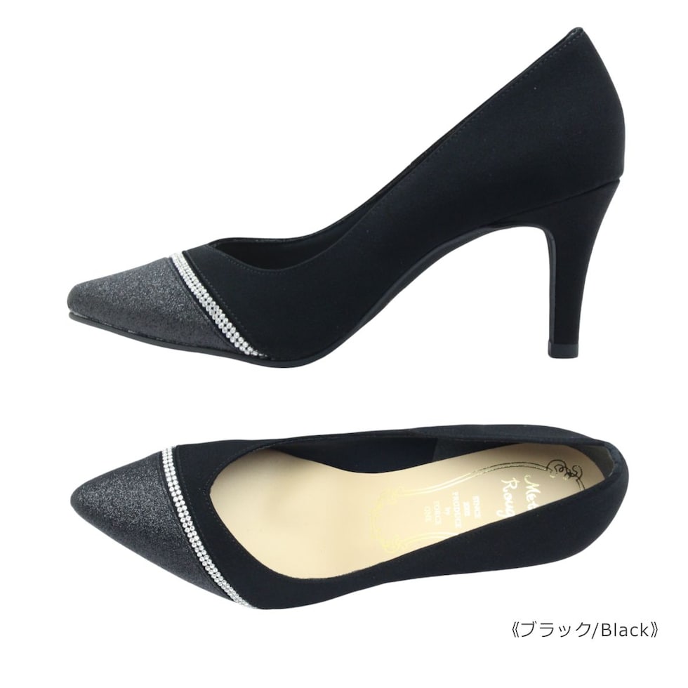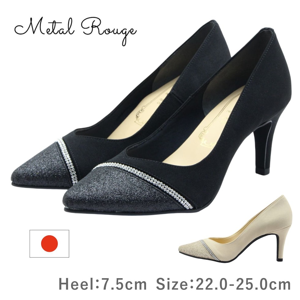 Metal Rouge メタルルージュ レディース パンプス 710 ポインテッドトゥ ピンヒール グリッター ラメ ラインストーン キジ ヒール 日本製 国産 靴 黒 ブラック ベージュ