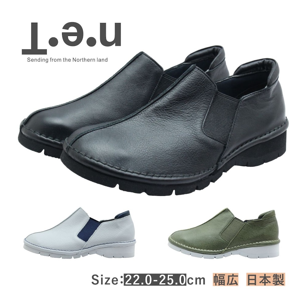neT ネット レディース シューズ 3017 スリッポン レザー 4E 幅広 本革 日本製 黒 ブラック グレー グリーン