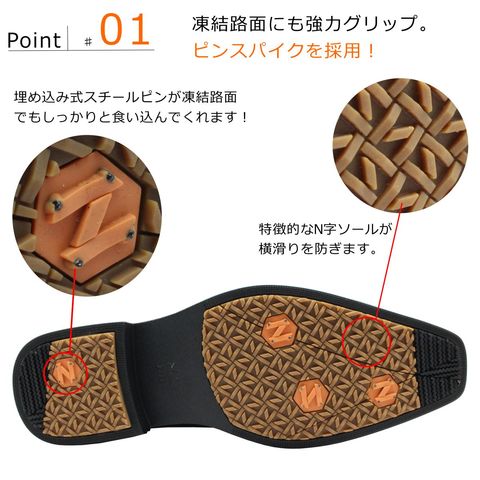 | ノースデイト NORTH DATE メンズ スパイク ビジネスシューズ 3309 スノー ストレートチップ 防水 防滑 防寒 幅広4E 紐靴 ブラック ダテハキ 北海道 |