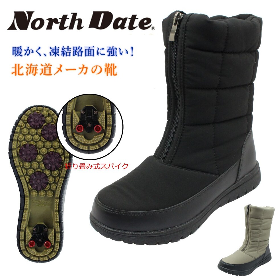 North Date ノースデイト レディース スパイク スノーブーツ 38037 センターファスナー 防寒 防滑 防水 靴 ダテハキ 北海道