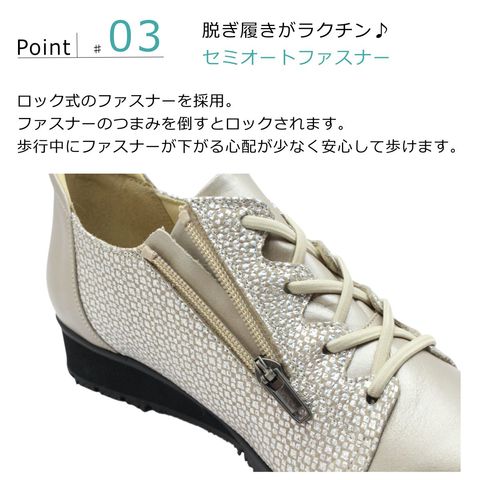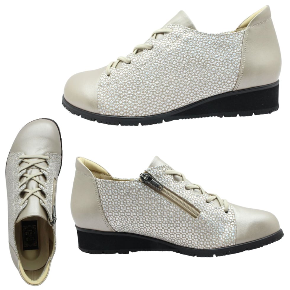 | ロワールエシェール レディース コンフォートシューズ 3502 幅広5E 防滑底 本革 日本製 ゴム紐 ファスナー 婦人靴 カジュアル オークパール LOIR et CHER |