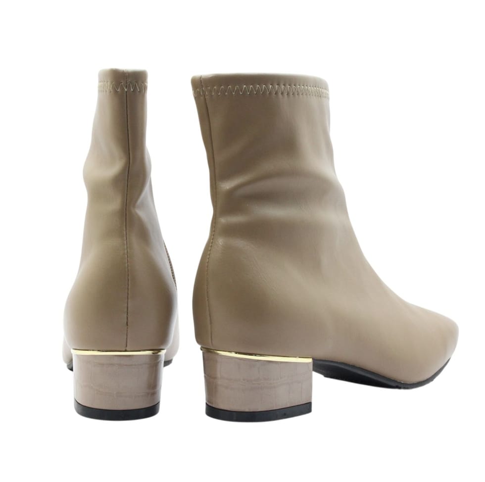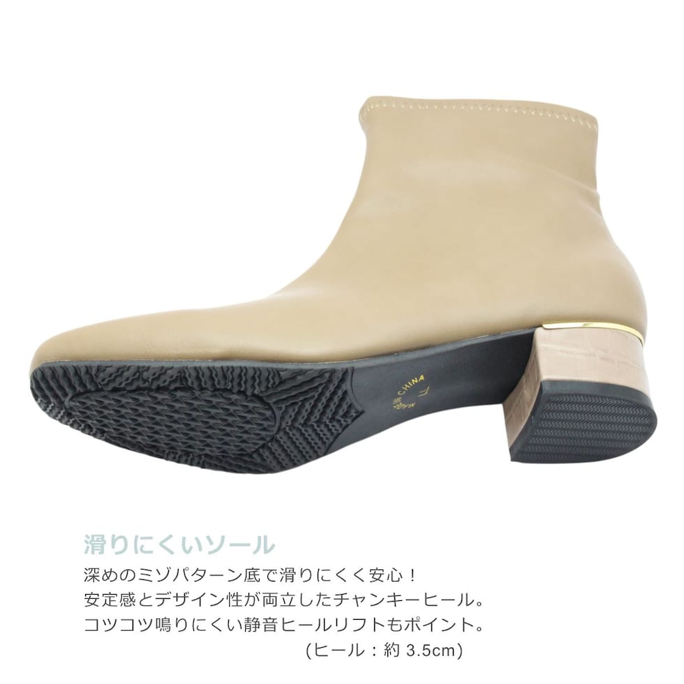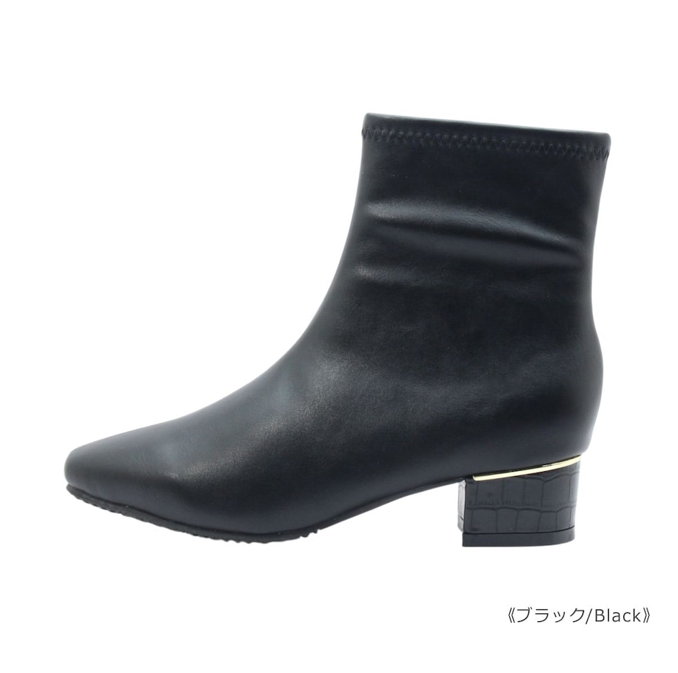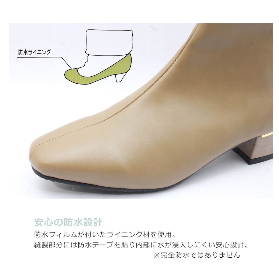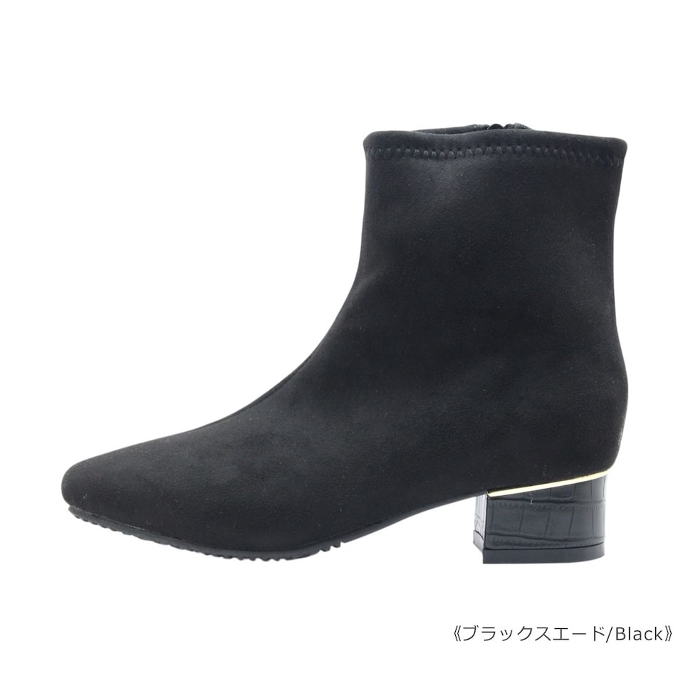pariwinky パリウィンキー レディース ブーツ 3040 ショート スクエアトゥ チャンキーヒール ジップ 防水 滑りにくい 防滑 靴 黒 オーク ブラック ブラックスエード