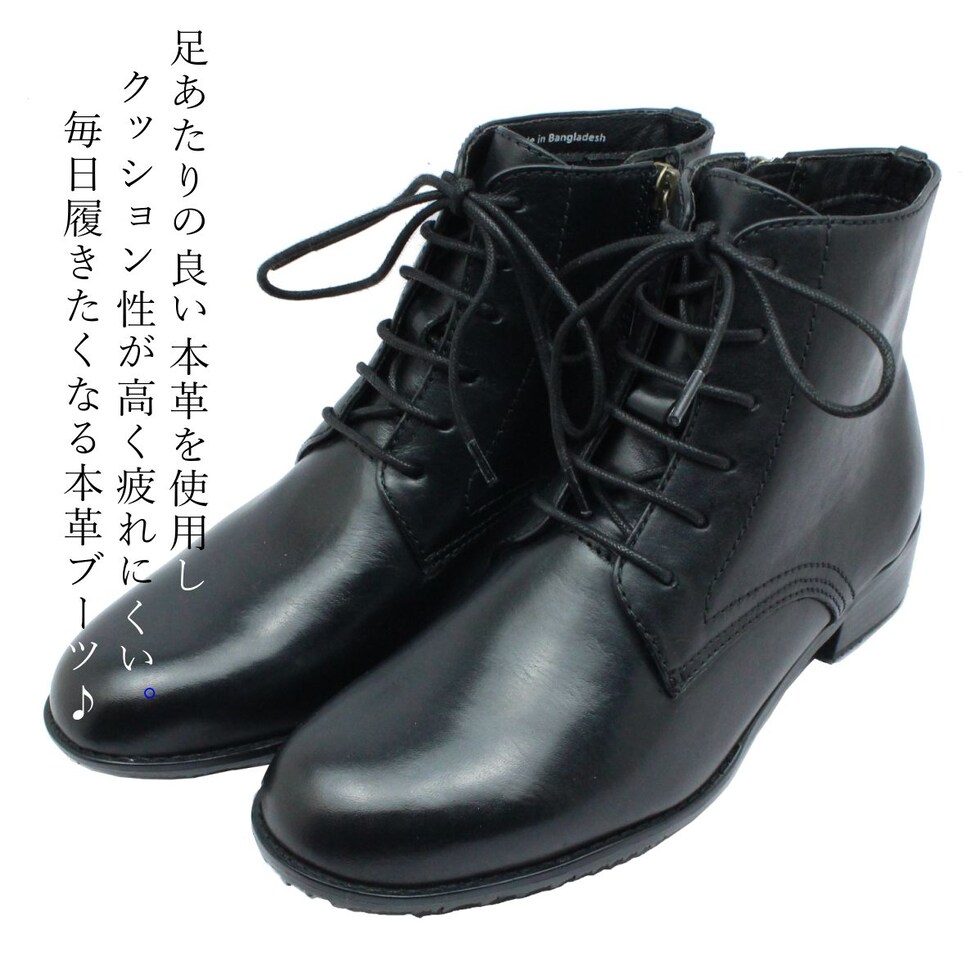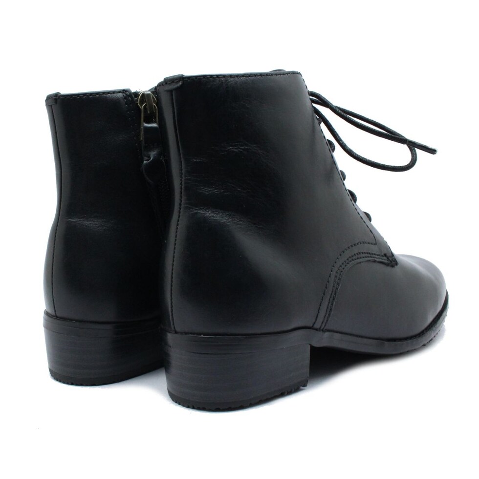 Periwinkle ペリウィンクル レディース ショートブーツ ファスナー 9104 防滑 本革 レザー 紐 レースアップ 婦人靴 ブラック