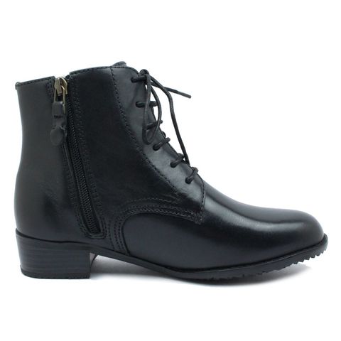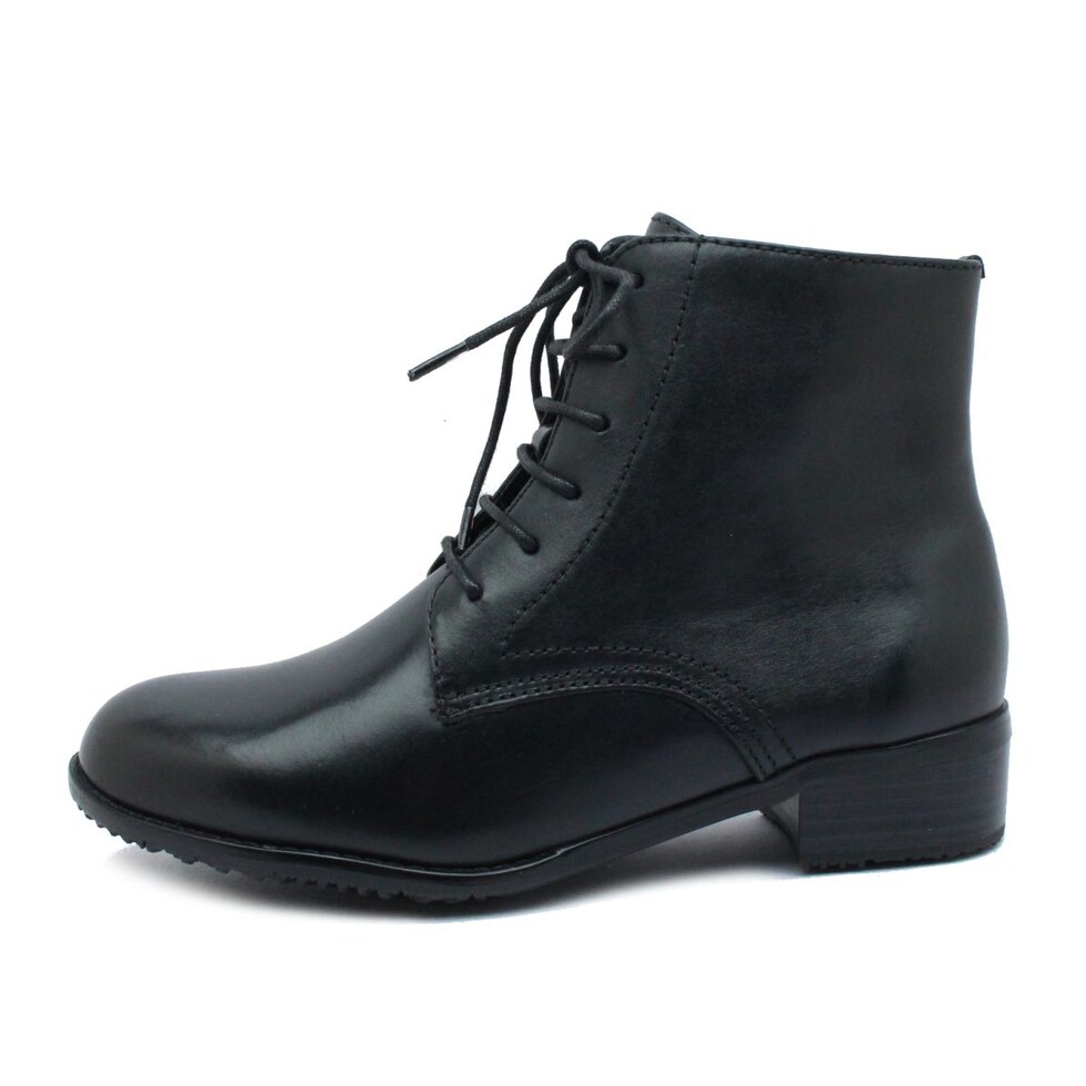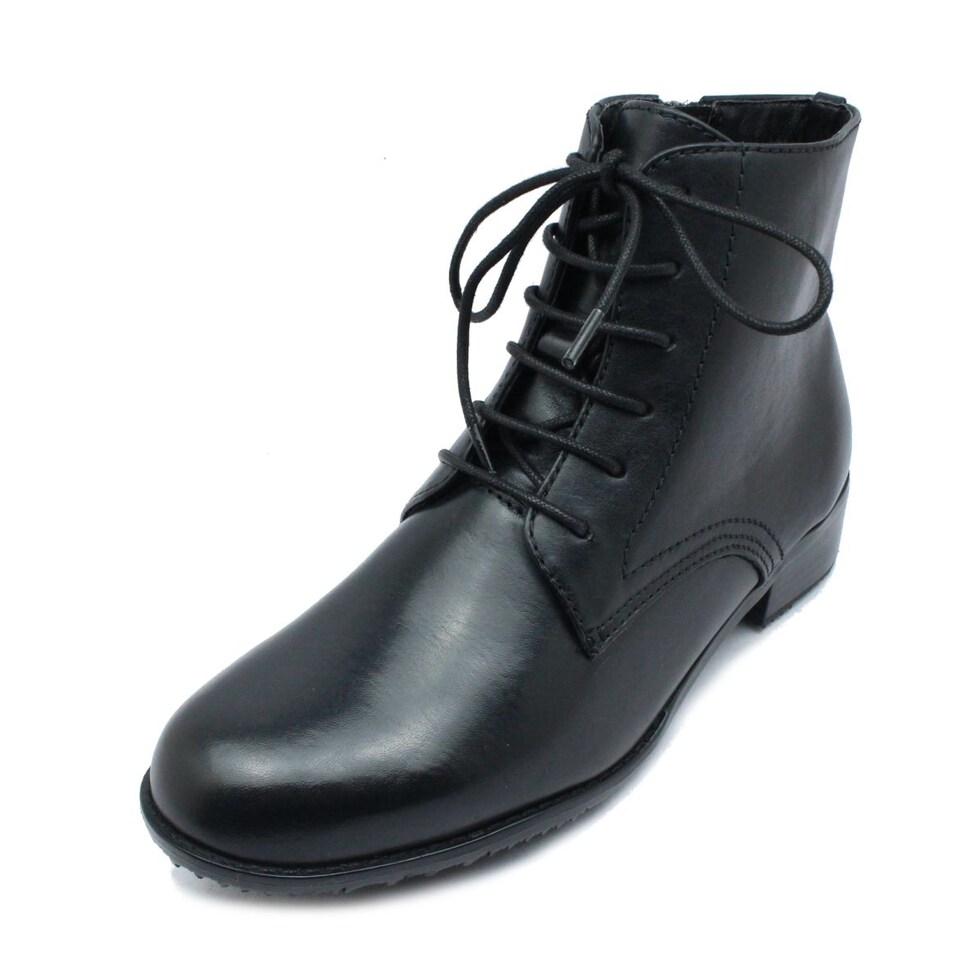 | Periwinkle ペリウィンクル レディース ショートブーツ ファスナー 9104 防滑 本革 レザー 紐 レースアップ 婦人靴 ブラック |