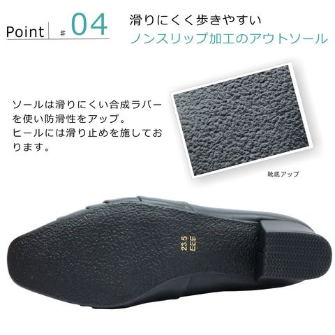 太めのヒールなので歩行時の安定感も抜群でクッション性の良さもポイントです。