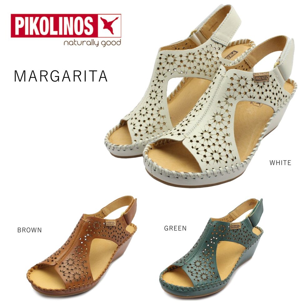 ピコリノス PIKOLINOS レディース MARGARITA レザー サンダル ウェッジソヒール パンチング PK852 本革 943-1690 スペイン