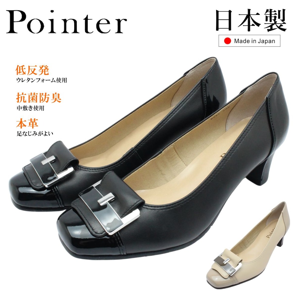 Pointer ポインター レディース レザー パンプス 6501 スクエア 5.5cmヒール 3E 本革 バックル ブラック ベージュ エナメル 日本製