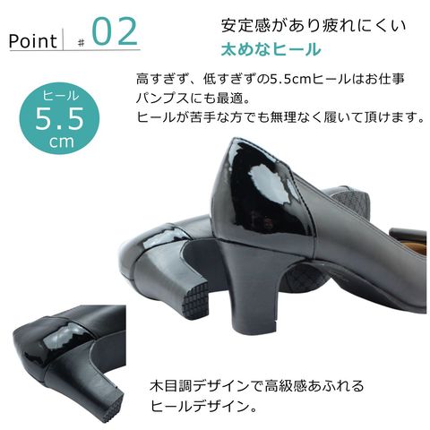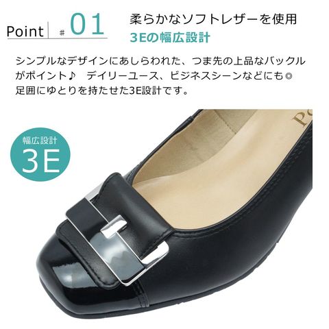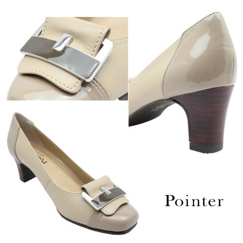 | Pointer ポインター レディース レザー パンプス 6501 スクエア 5.5cmヒール 3E 本革 バックル ブラック ベージュ エナメル 日本製 |