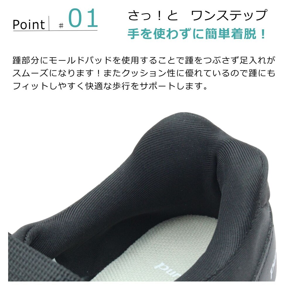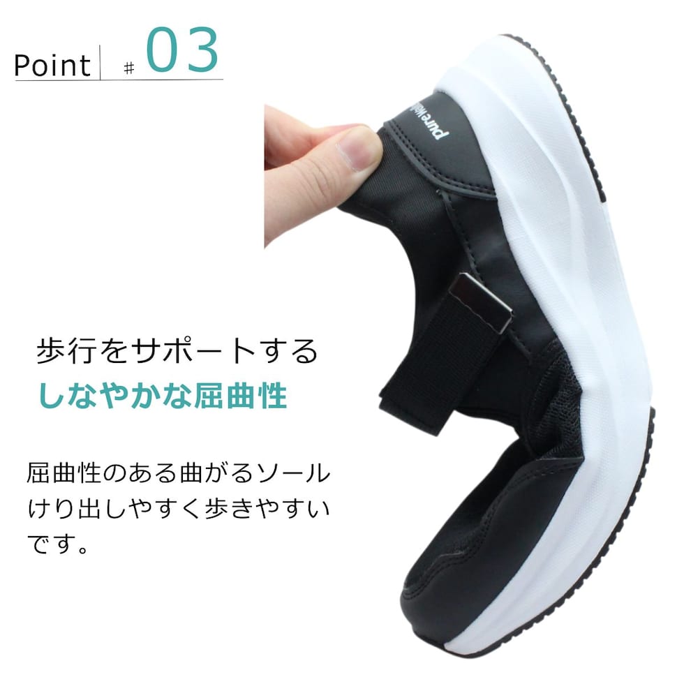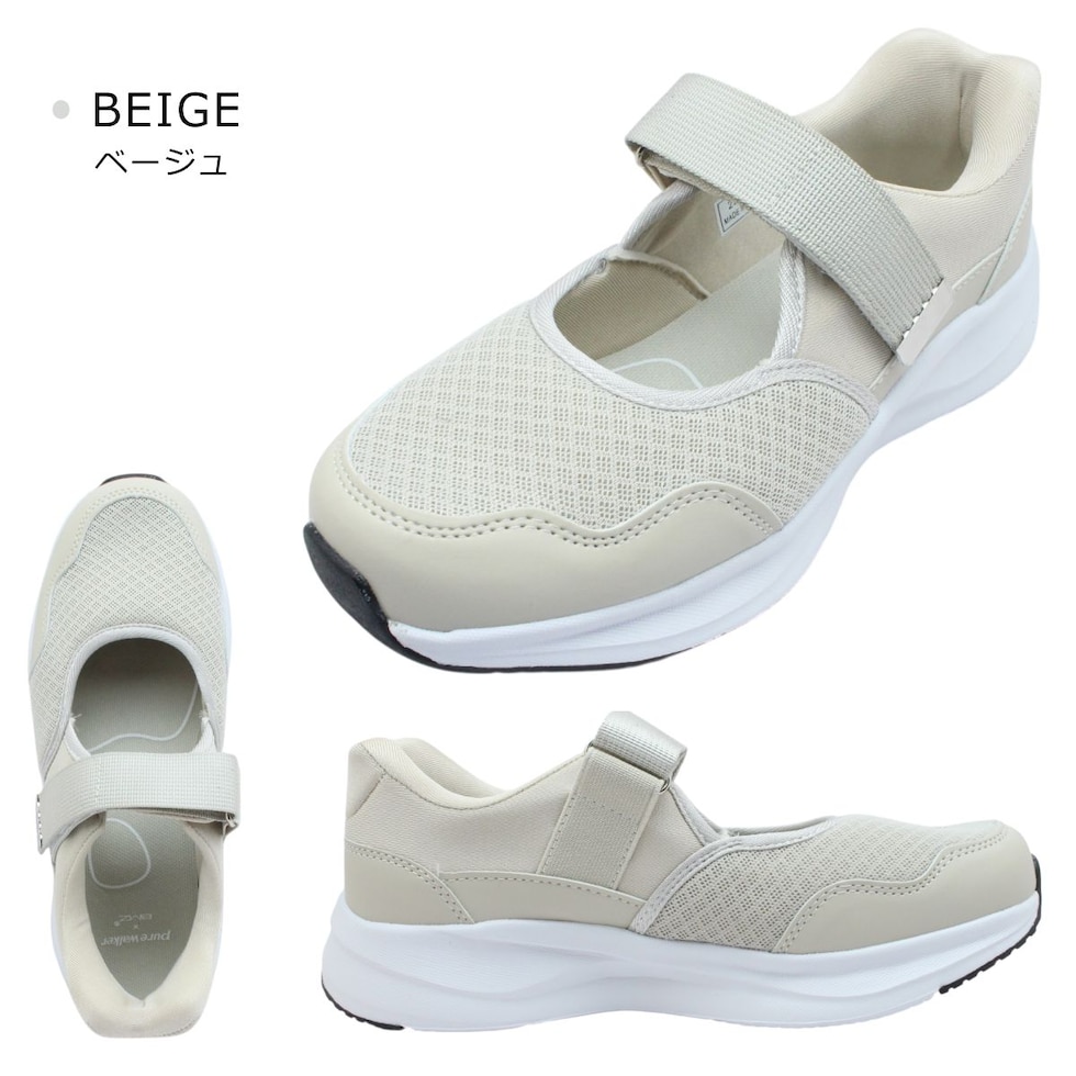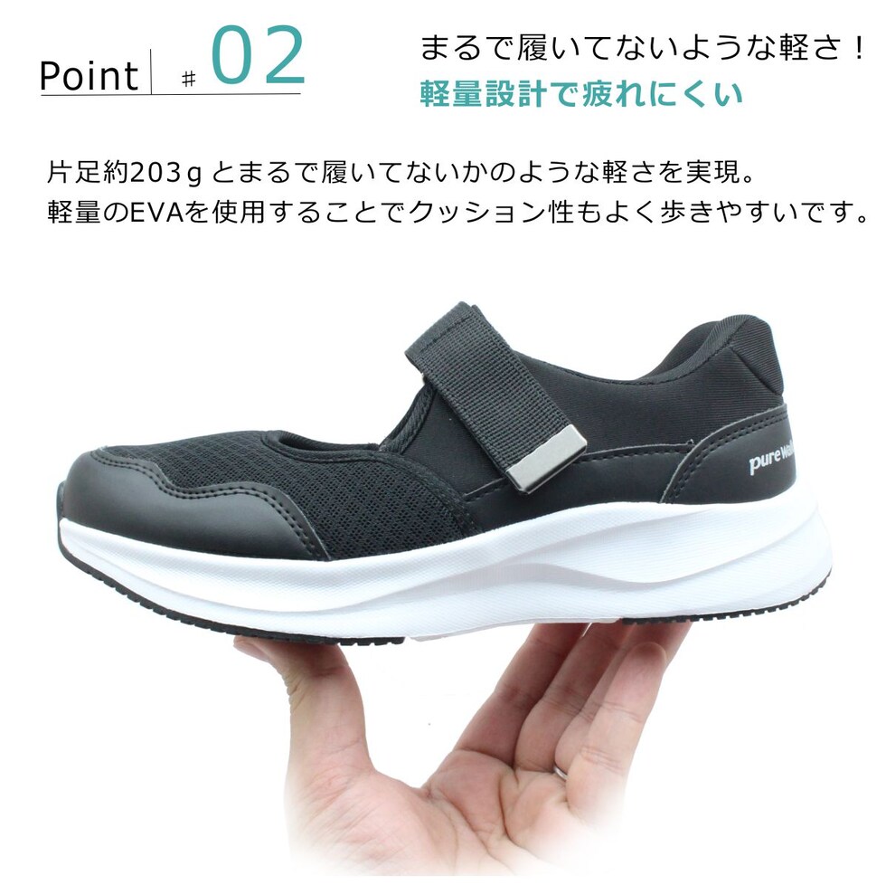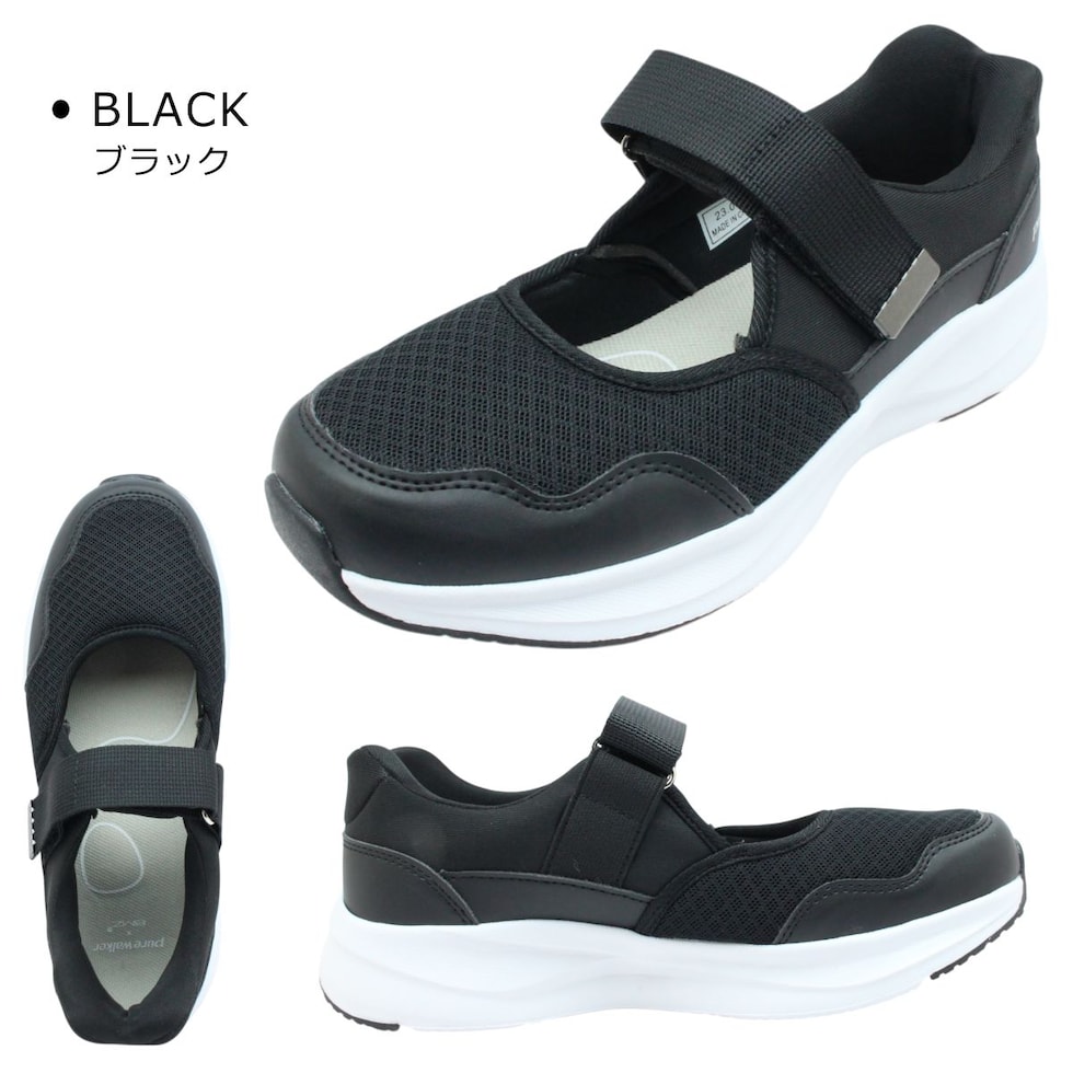 PURE WALKER ピュアウォーカー レディース スニーカー PW1700 スリッポン BMZインソール ベルト ブラック ホワイト 靴 スライドフィット