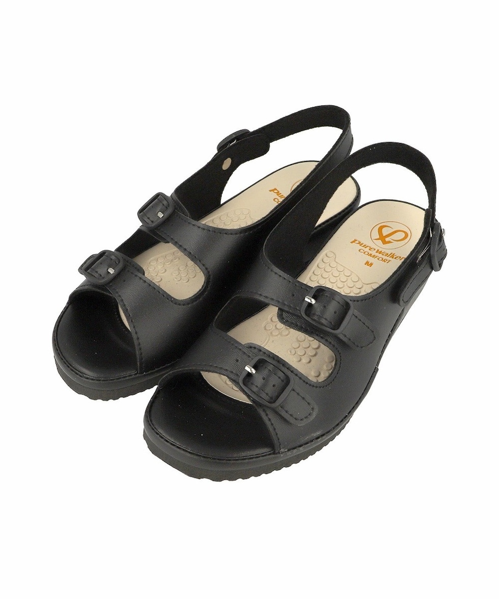 | pure walker ピュアウォカー レディース オフィース サンダル PW7612 ブラック ホワイト 仕事履き ナースシューズ 健康サンダル コンフォート 7612 |