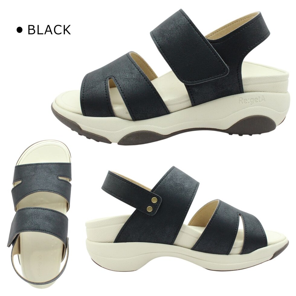 | Re:getA リゲッタ レディース RE3001 サンダル 厚底 ウェッジソール マジックテープ バックバンド 靴 日本製 |